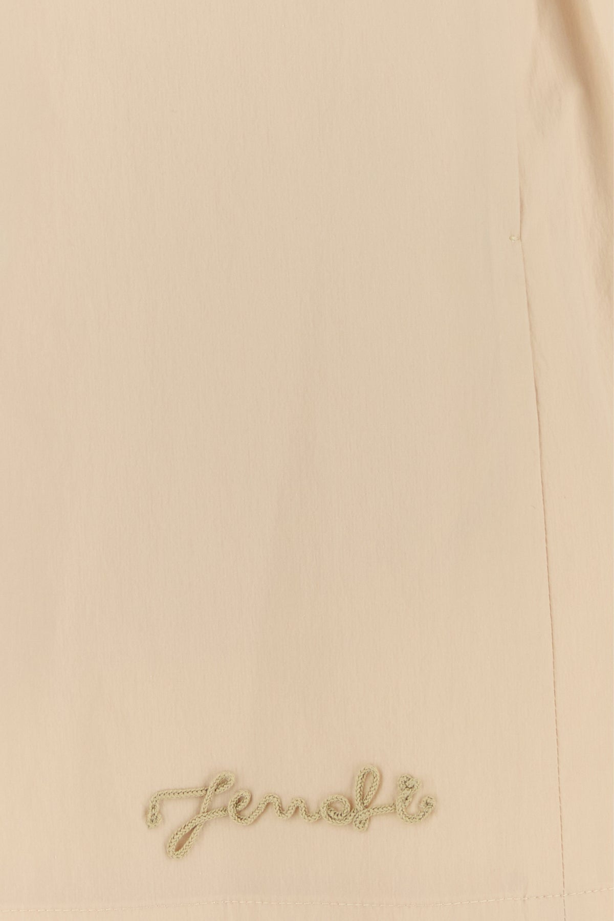 Shorts realized in stretch cotton blend characterized by contrasting embroidered logo on the hemline.