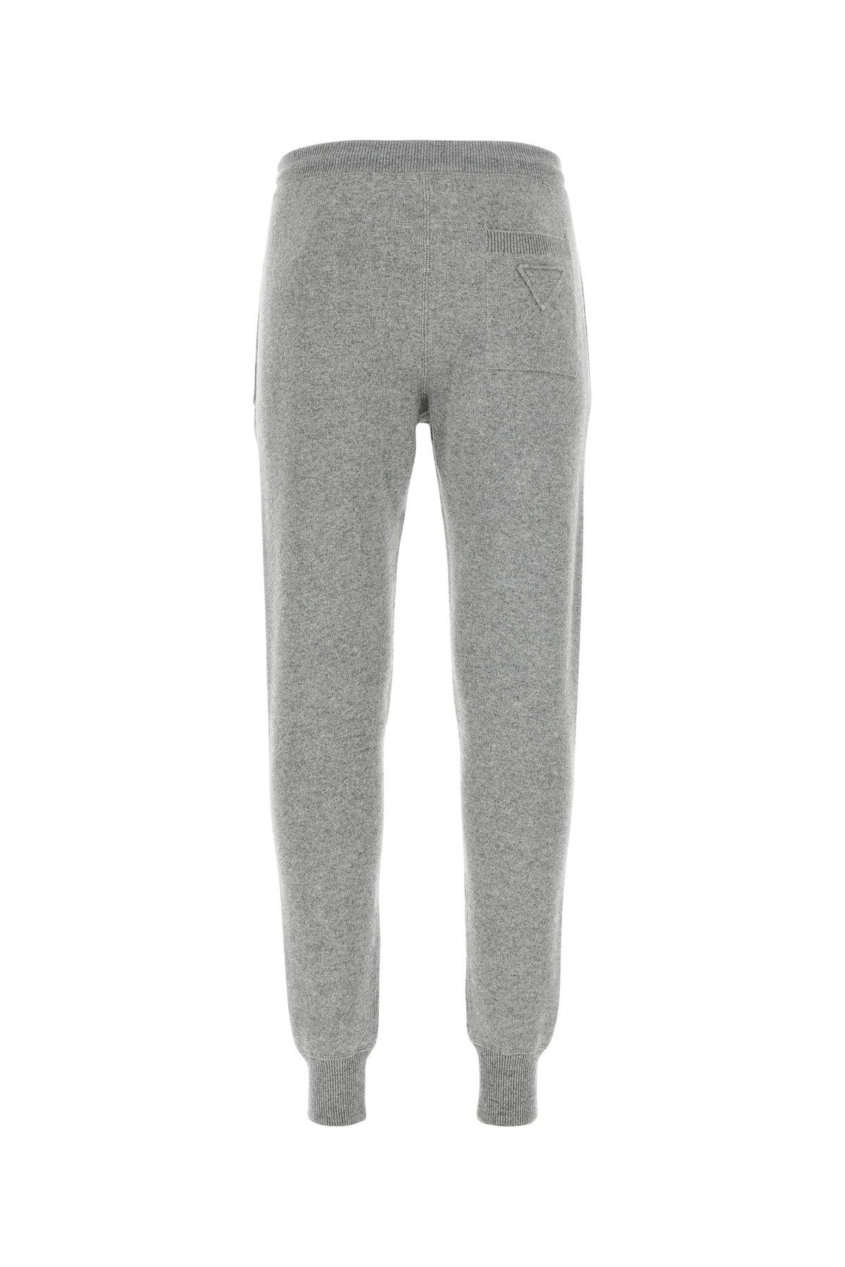 Joggers realized in stretch cashmere blend enriched by iconic tonal triangle at the back.