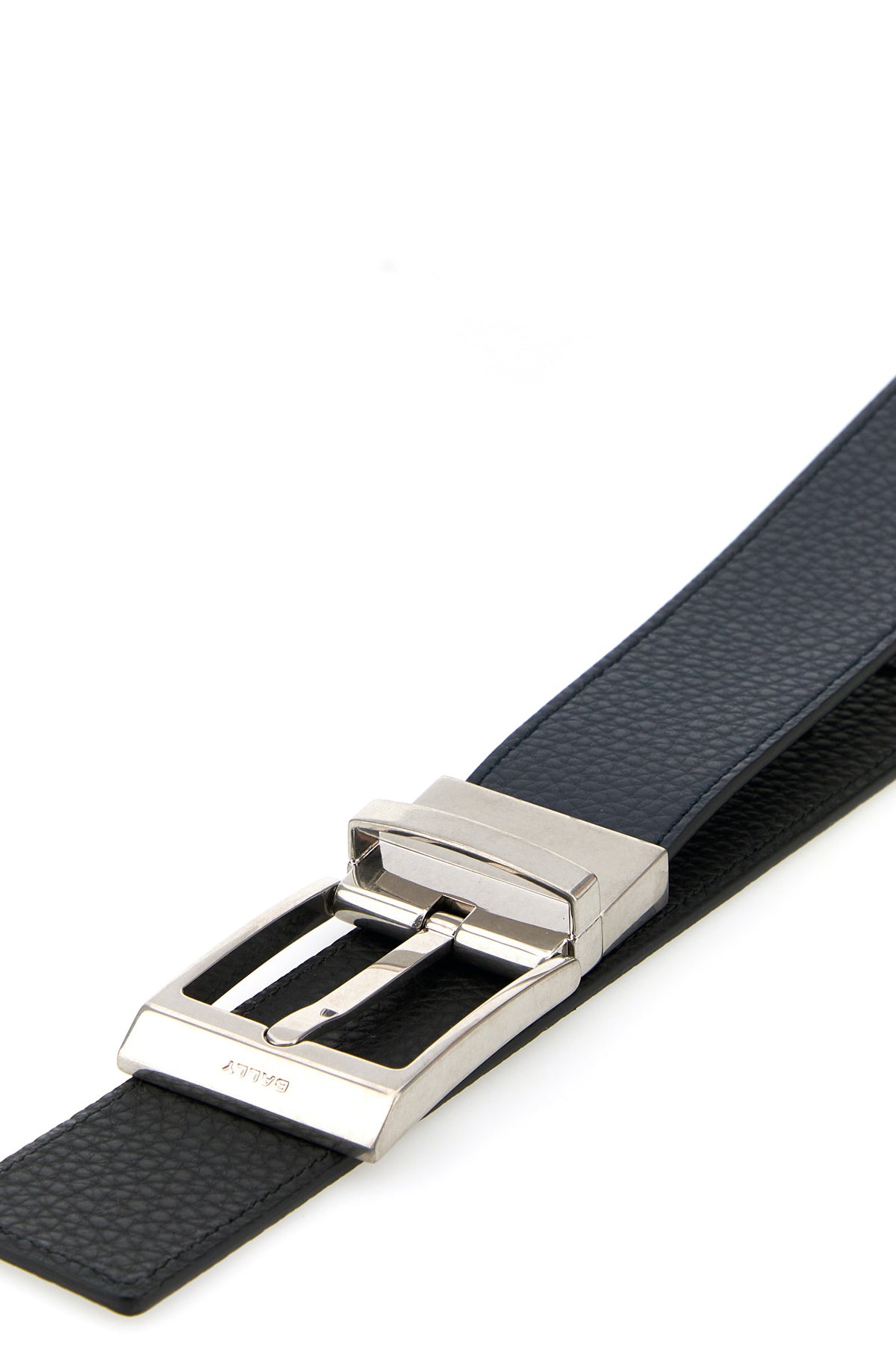 Reversible belt realized in pebble calf leather characterized by metal logoed buckle.