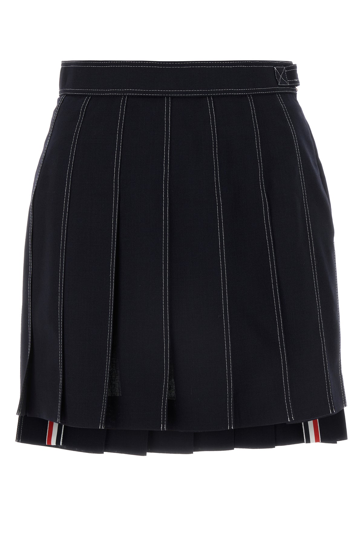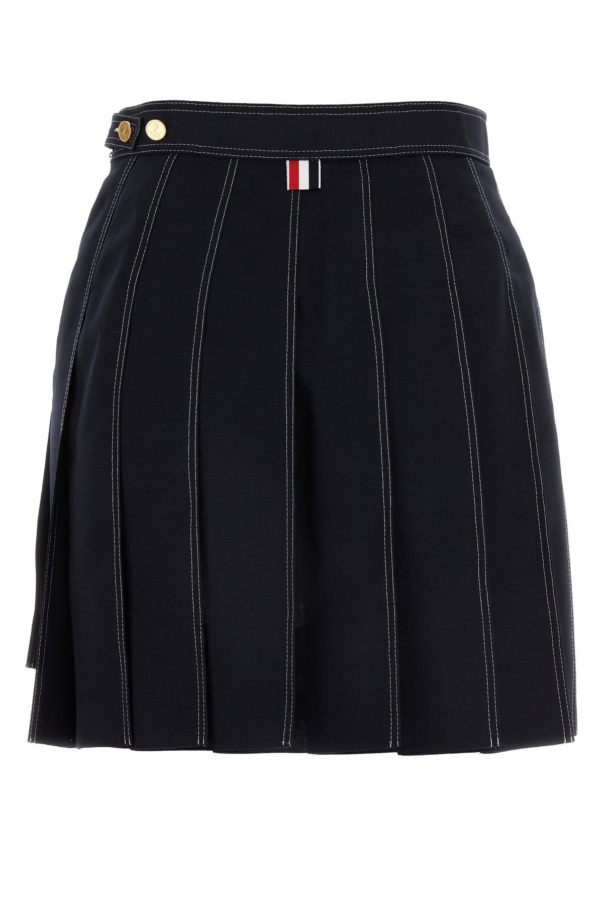 Pleated skirt realized in pure wool characterized by contrasting stitchings enriched by iconic tricolor label at the back.