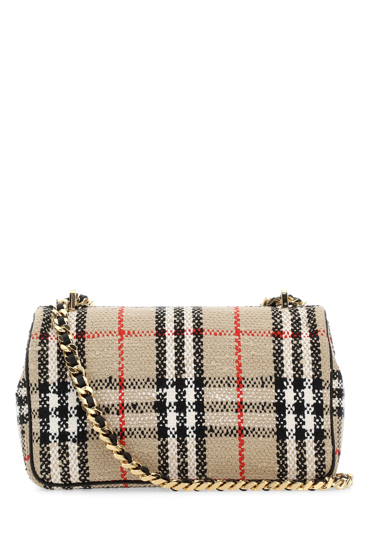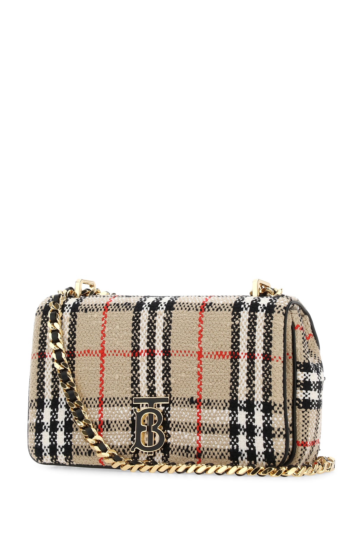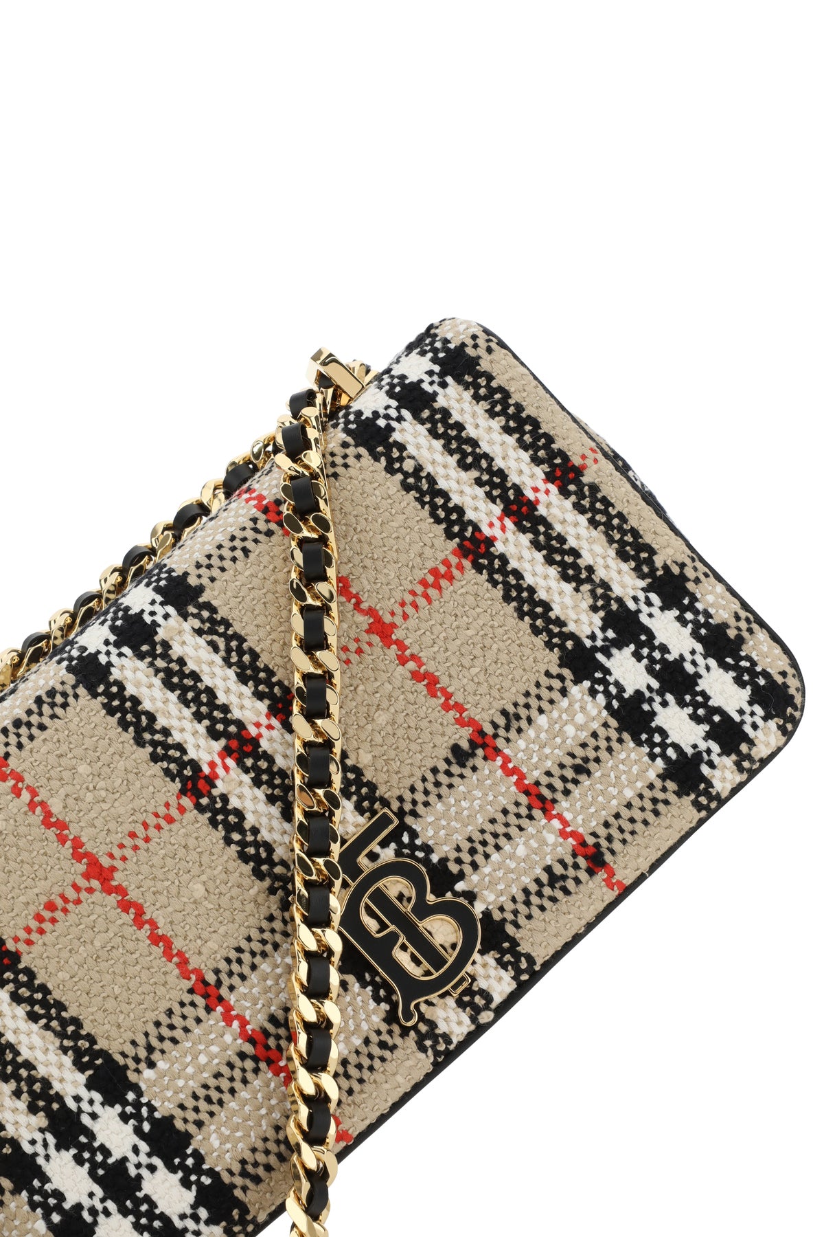 Shoulder bag realized in cotton blend boucle characterized by Tartan motif embroidery on the entire surface enriched by metal TB detail at the front.