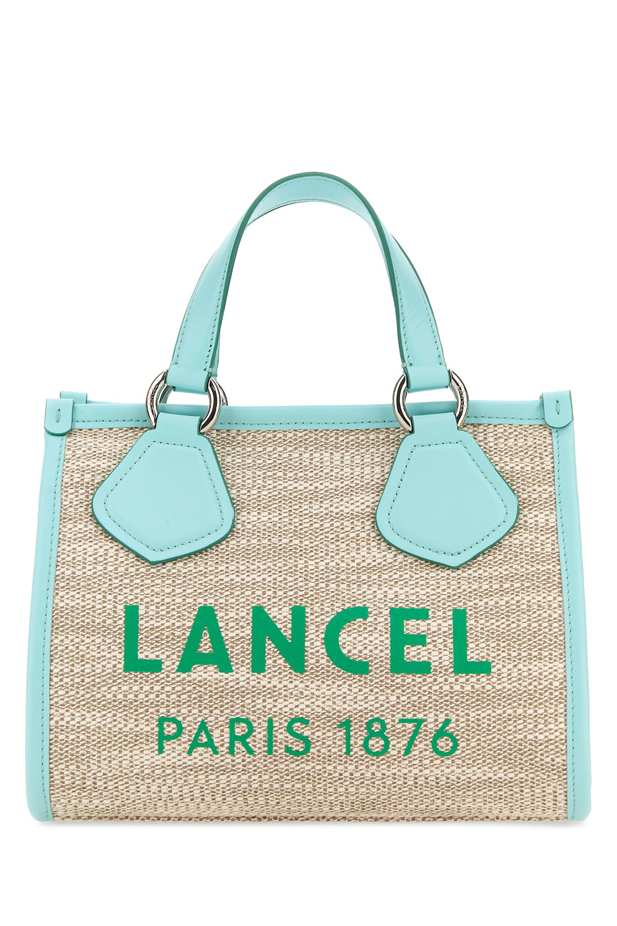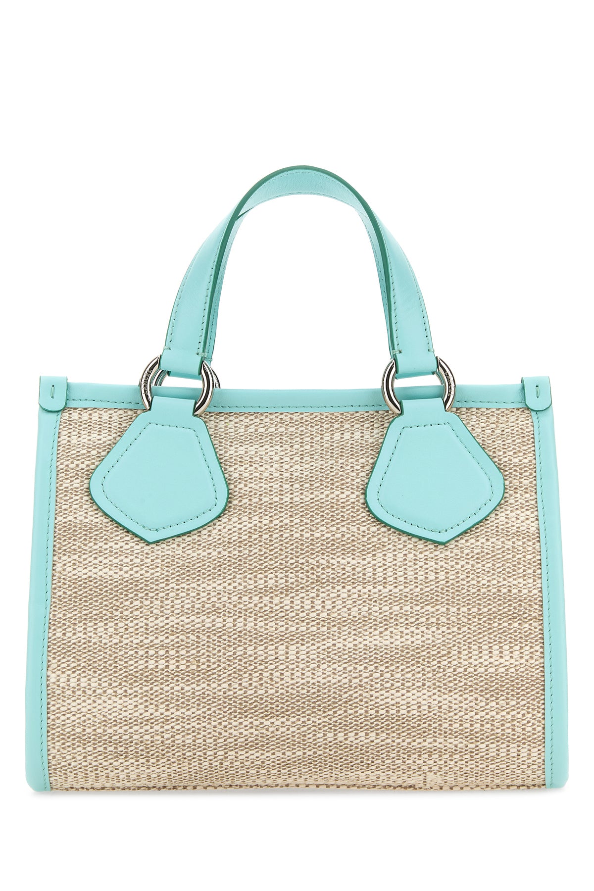 Shopping bag realized in canvas with leather inserts characterized by logoed print at the front.