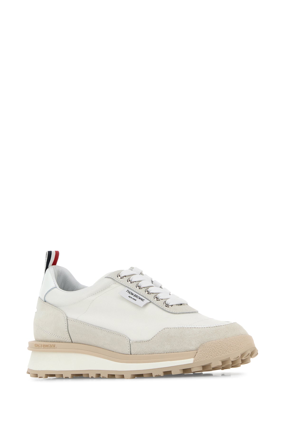 Sneakers realized in nylon and suede characterized by logo in relief on the side enriched by logoed label on the side and iconic tricolor label at the back.