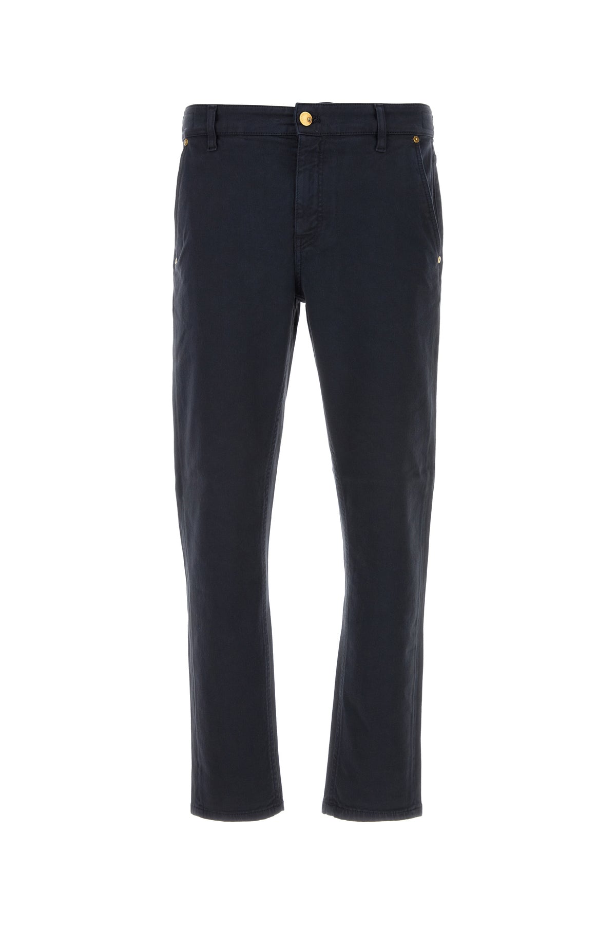 Regular jeans realized in stretch denim enriched by contrasting logoed label at the back.