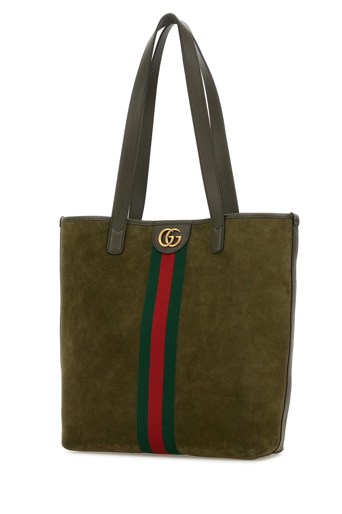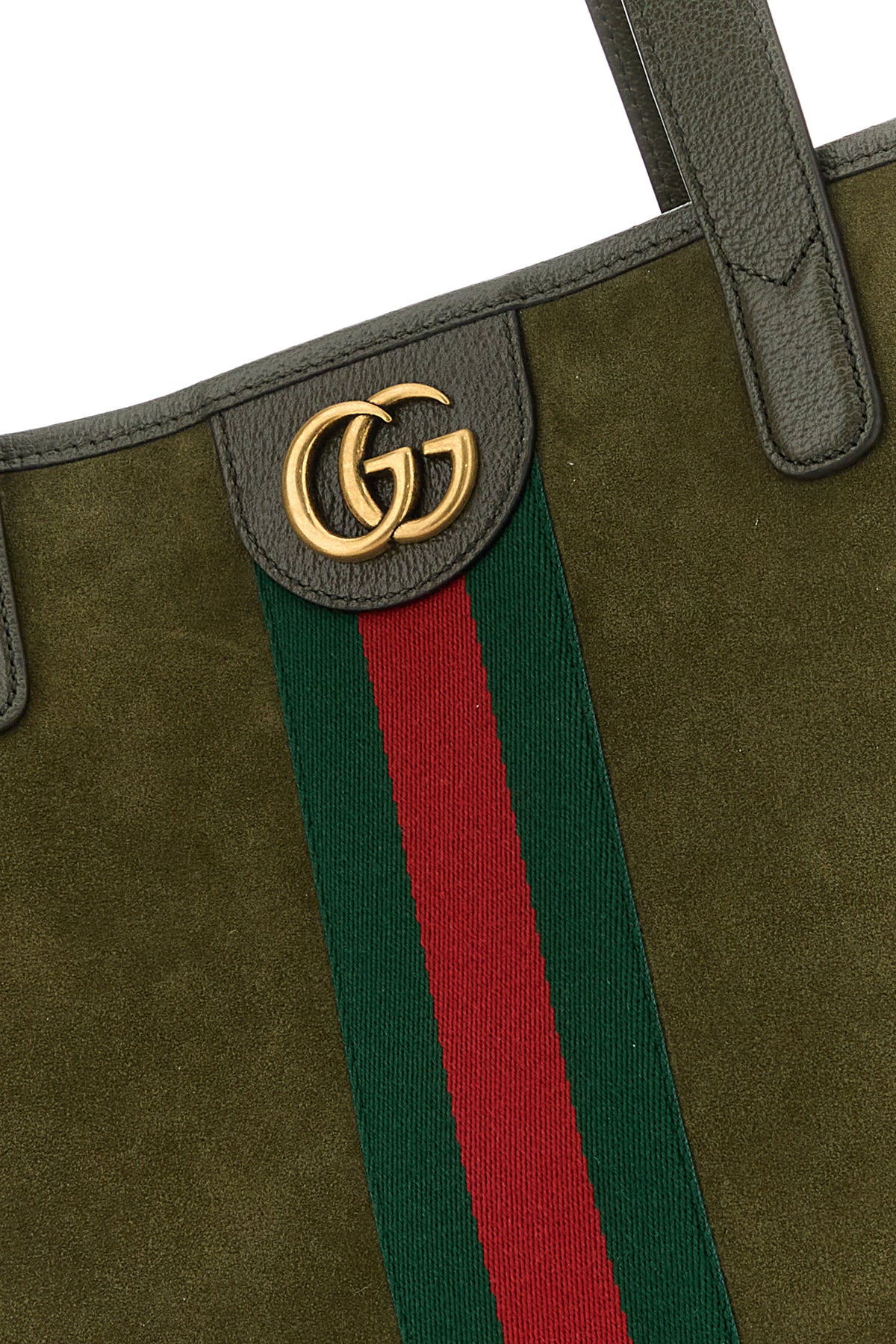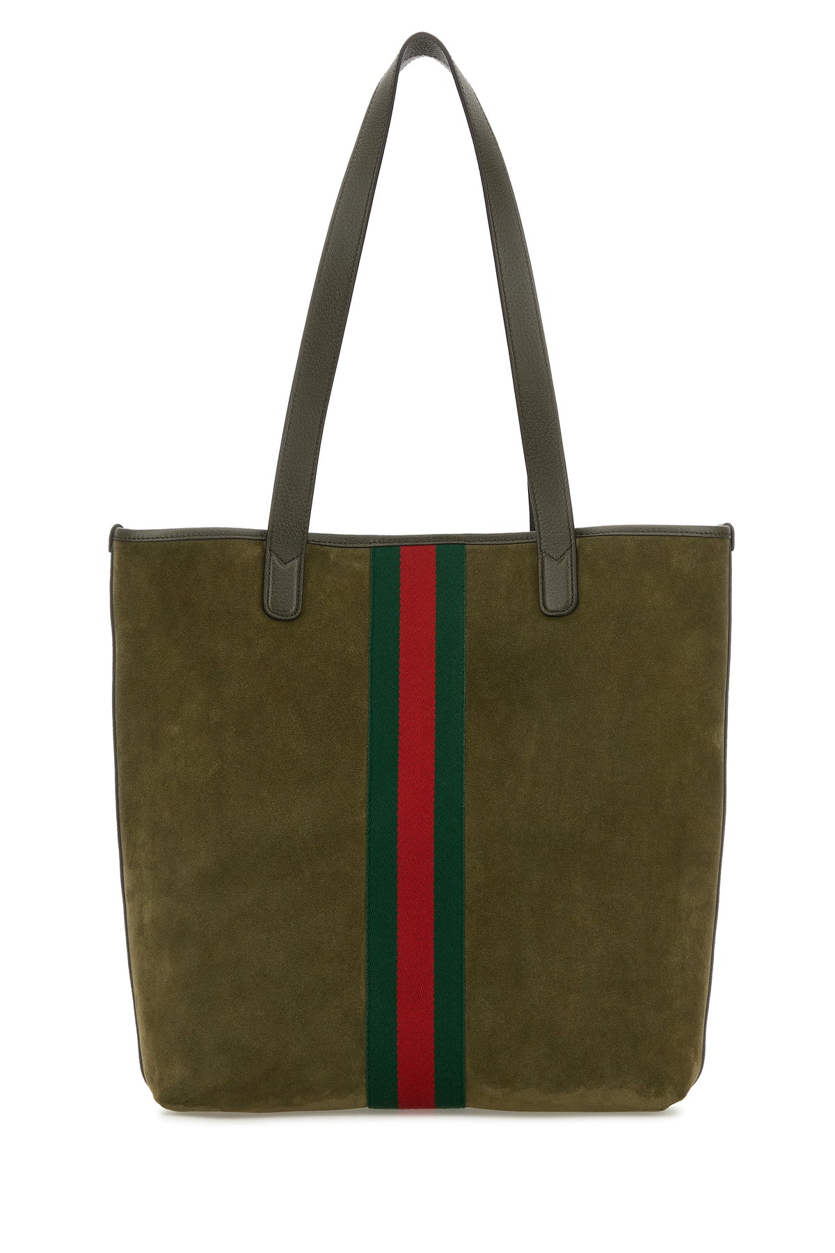 Shopping bag realized in suede enriched by GG metal detail at the front.