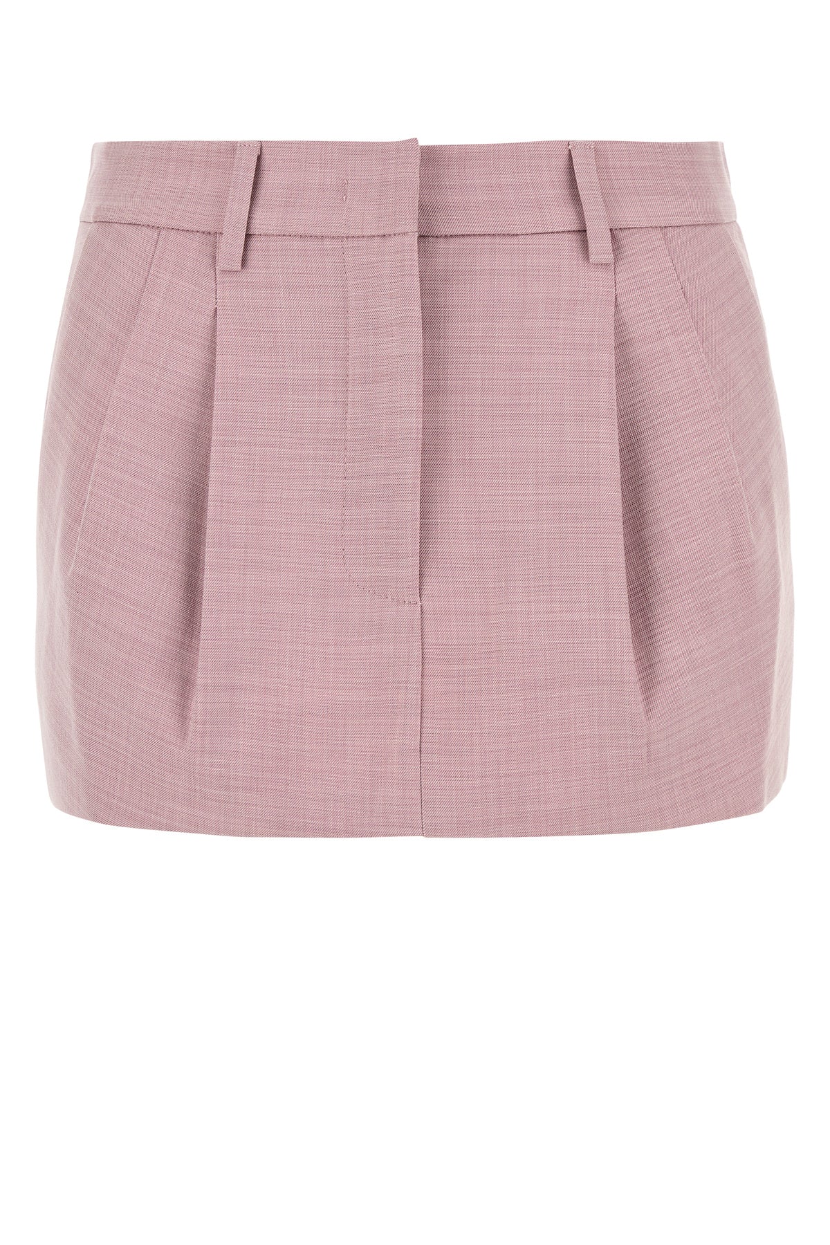 Mini skirt resized in stretch polyester blend characterized by inverted pleats.
