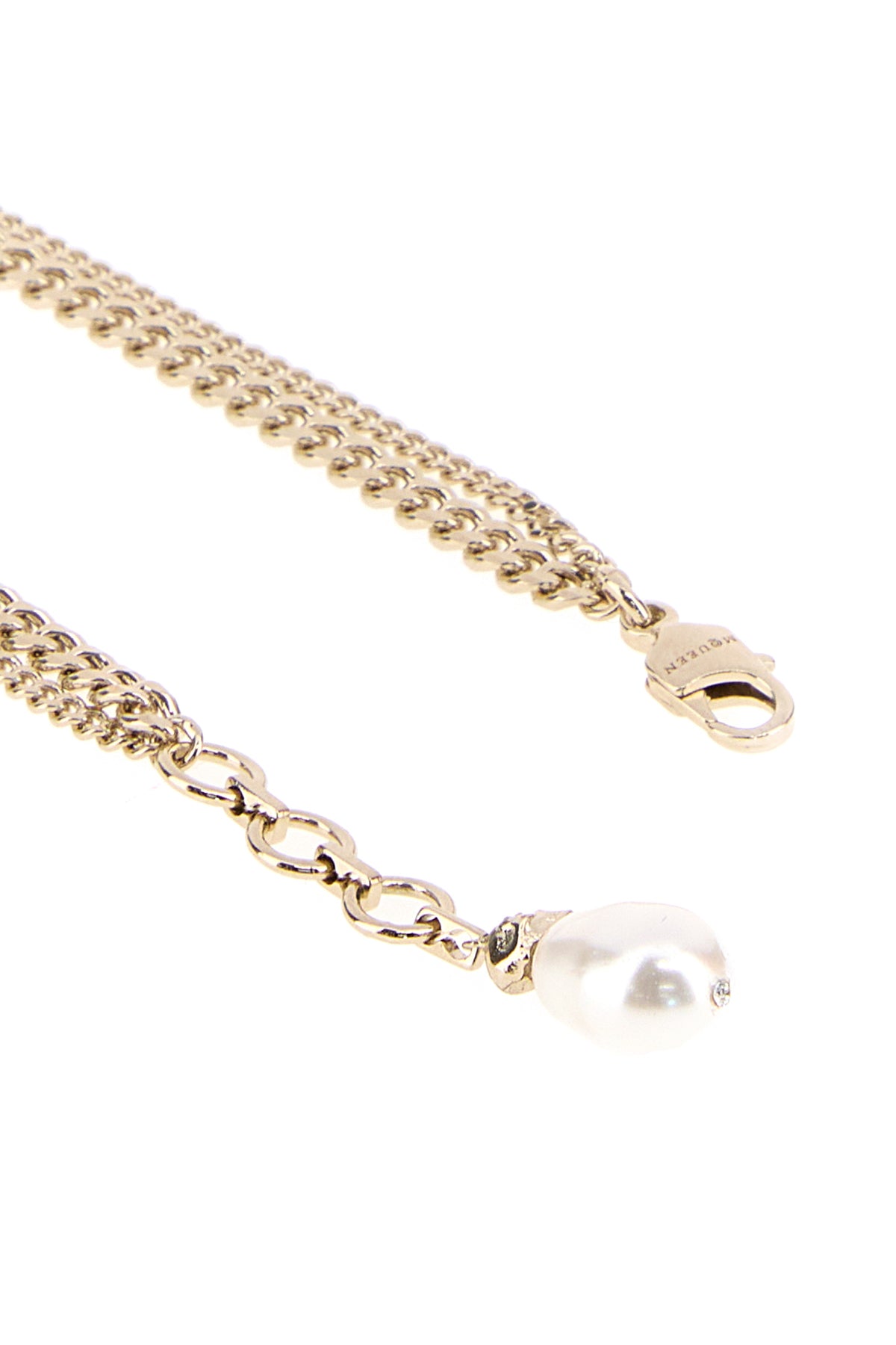 Bracelet realized in platinum-tone pleated metal enriched by rhinestone.