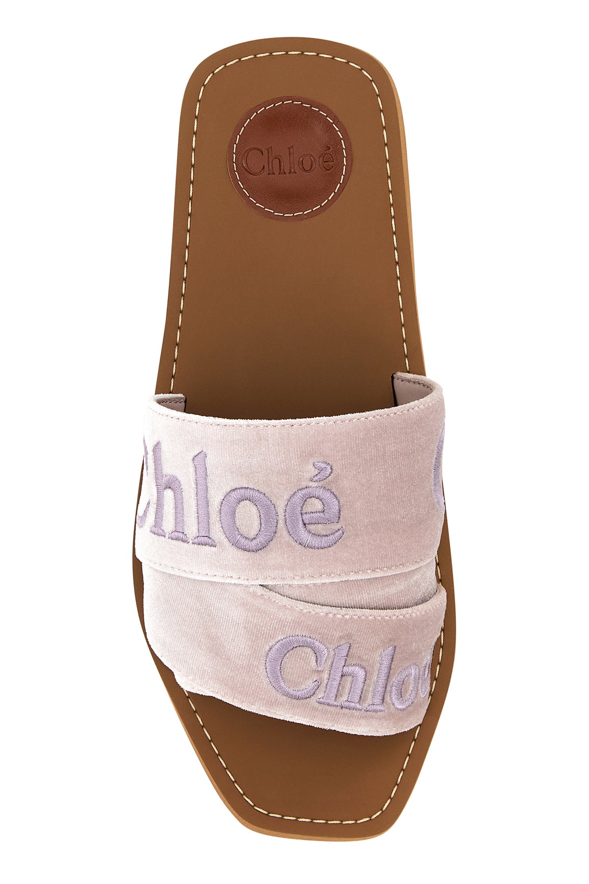 Slippers realized in velvet characterized by contrasting embroidered logo.