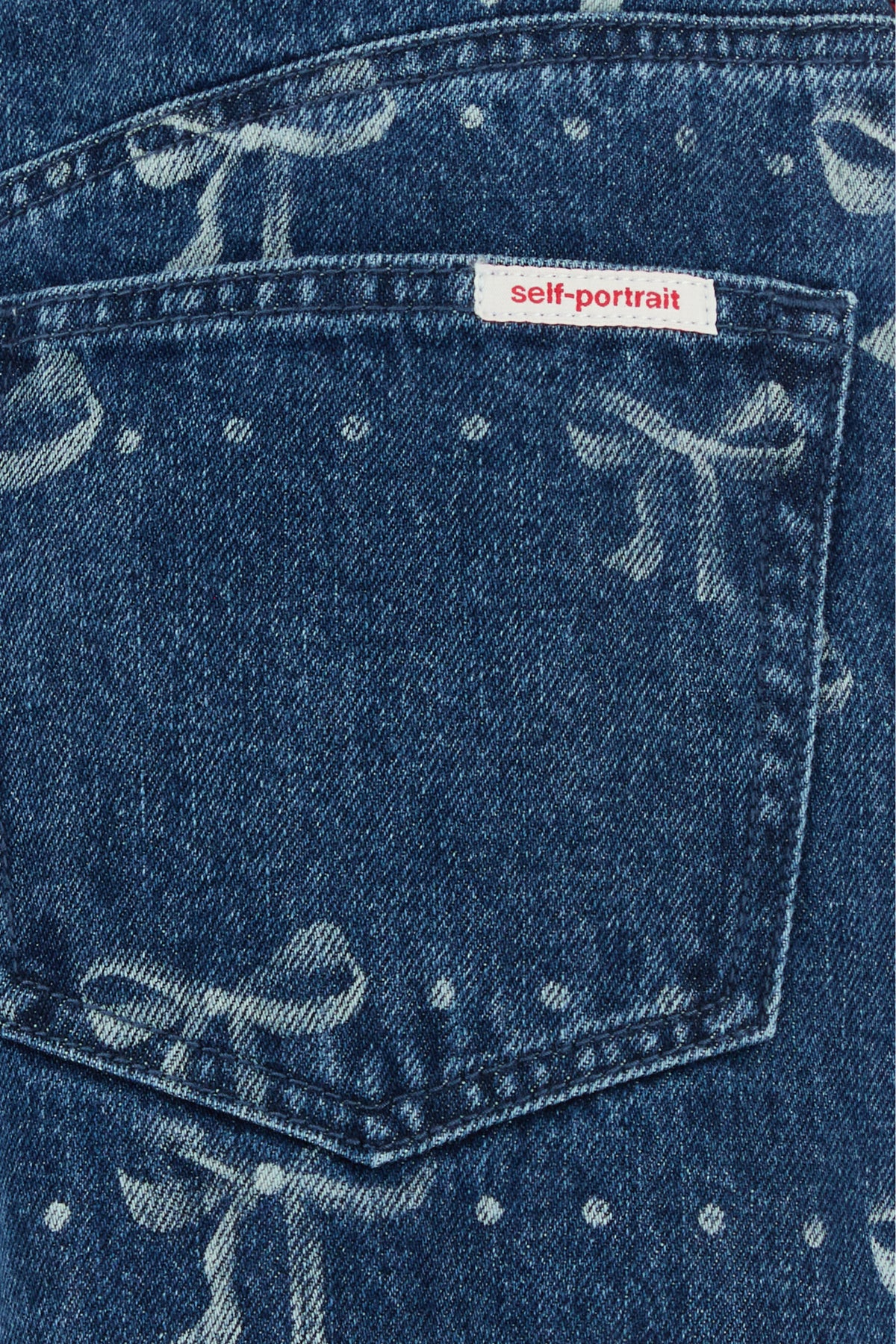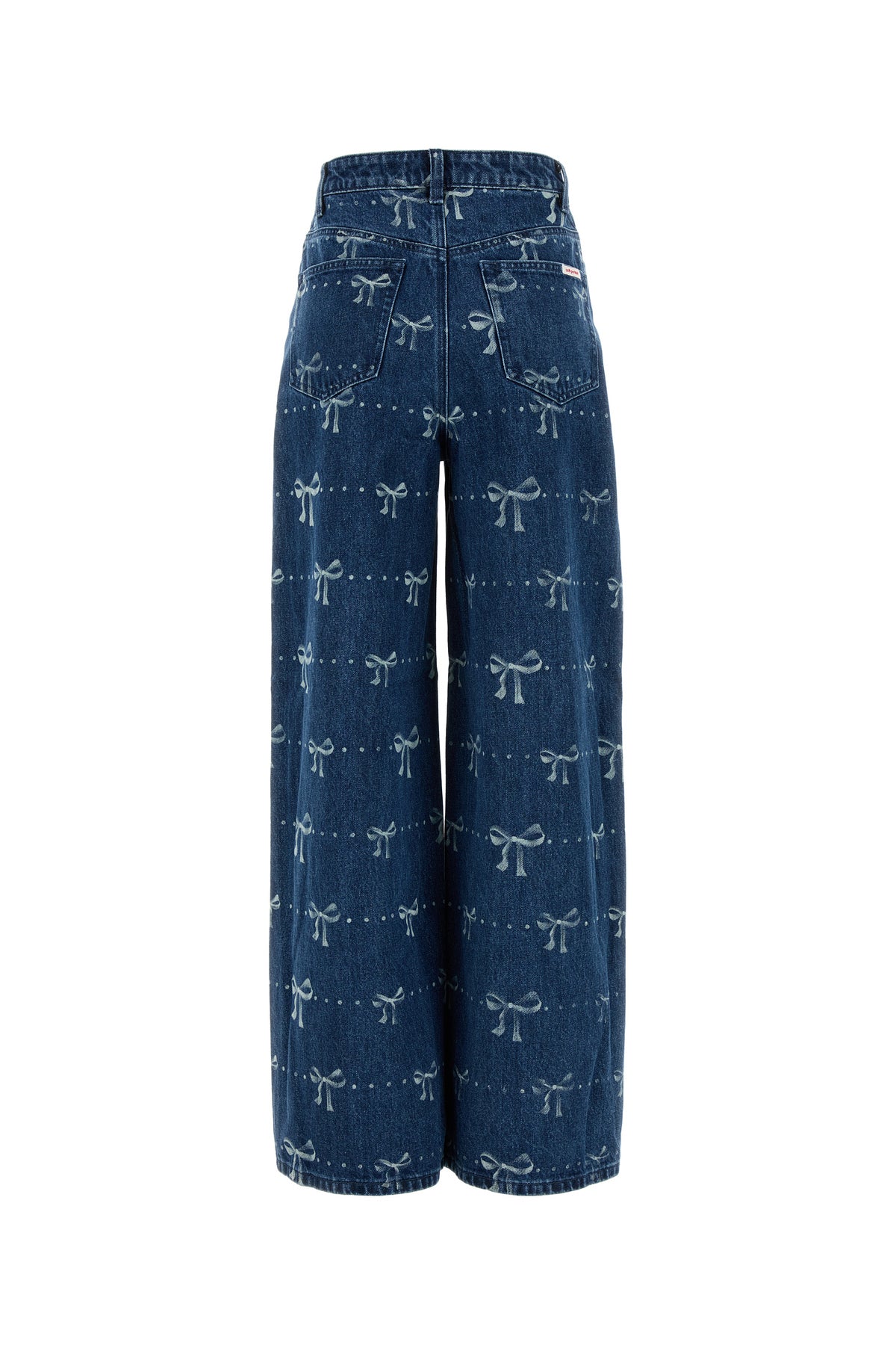 Wide-leg jeans realized in pure cotton denim characterized by Bow print on the entire surface.