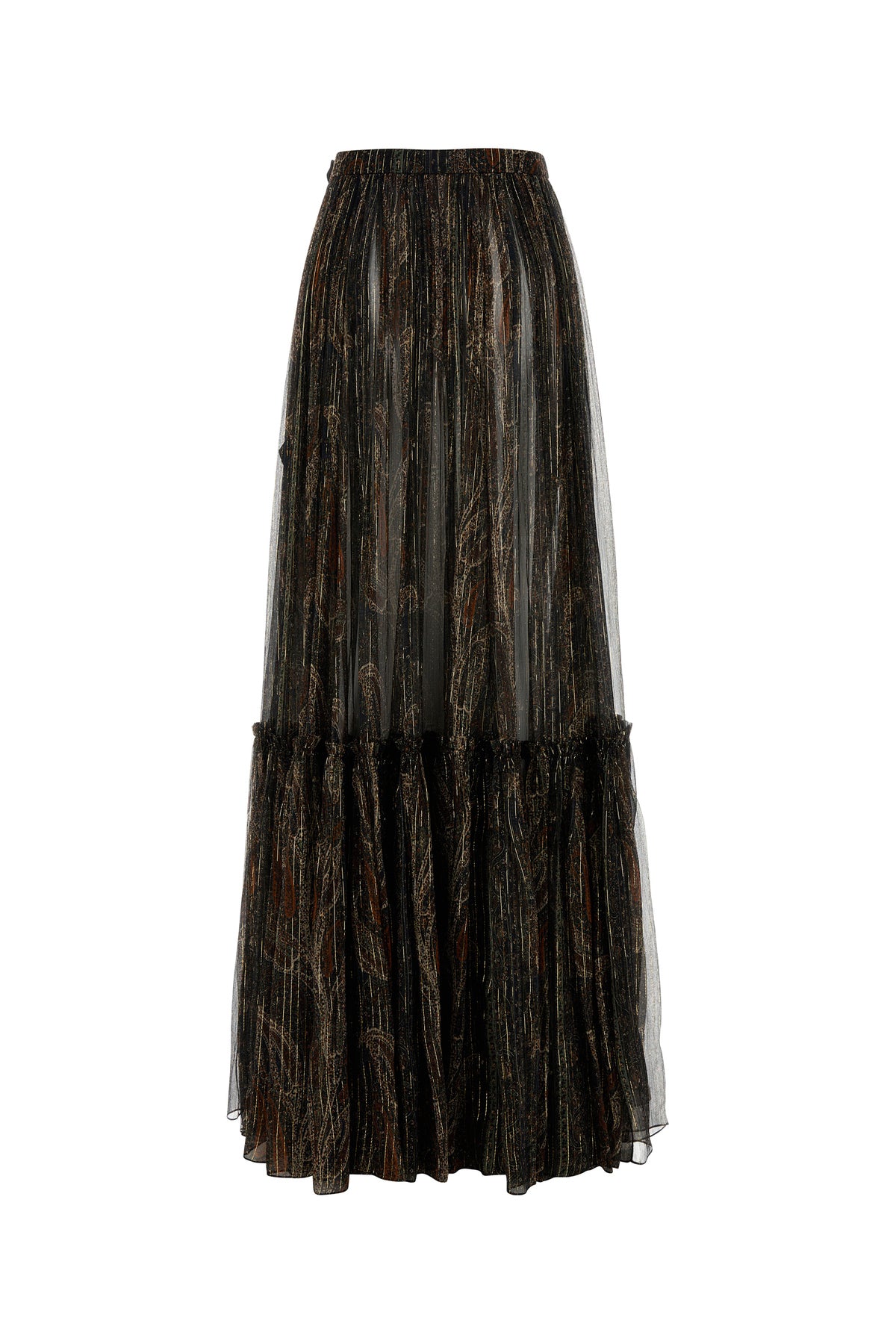 Skirt realized in silk with lurex threads characterized by Paisley print on the entire surface.