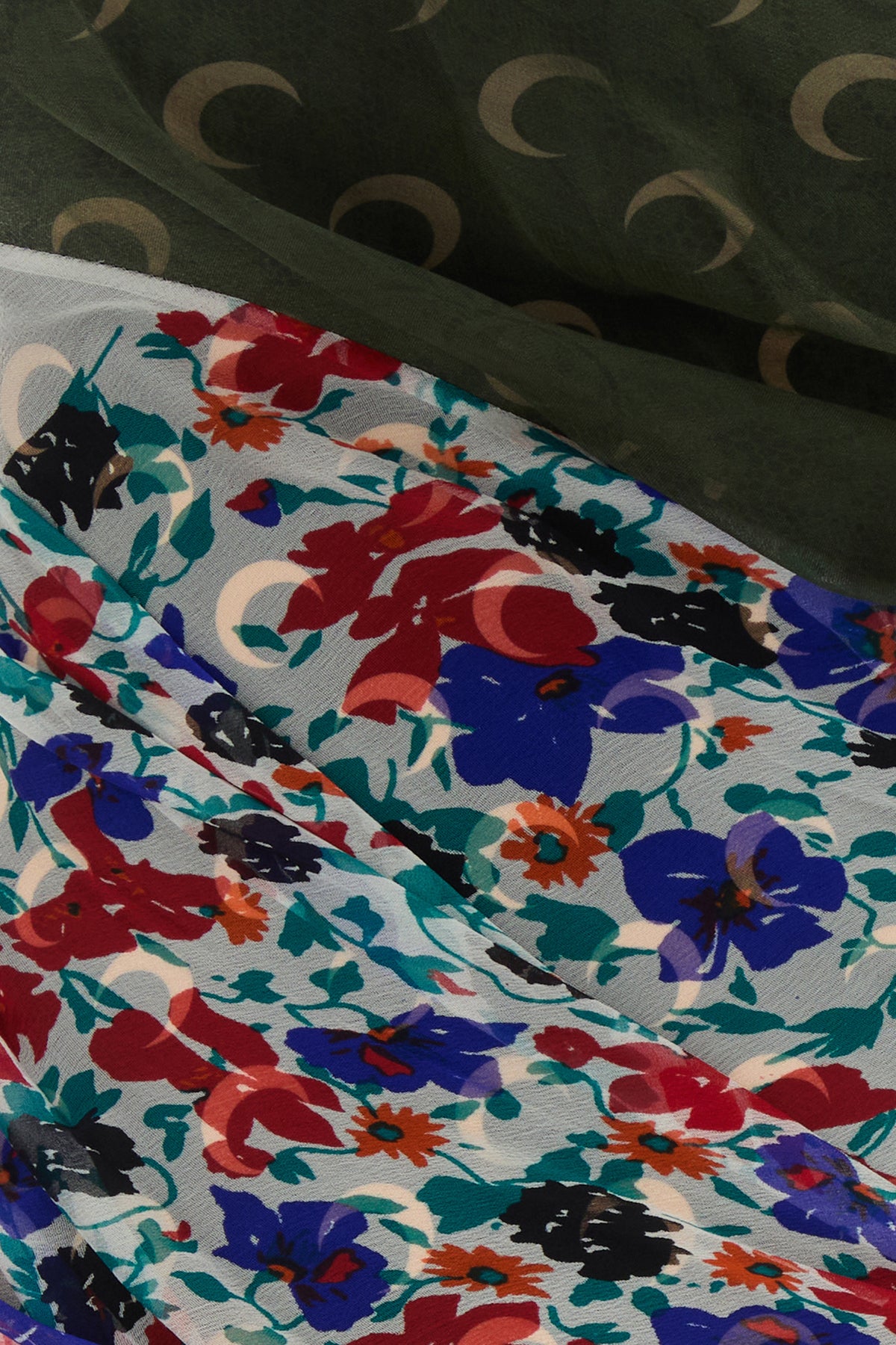 Mini dress realized in stretch nylon characterized by Moon print on the entire surface enriched by peculiar silk inserts on the entire surface and drapes at the front and at the back.