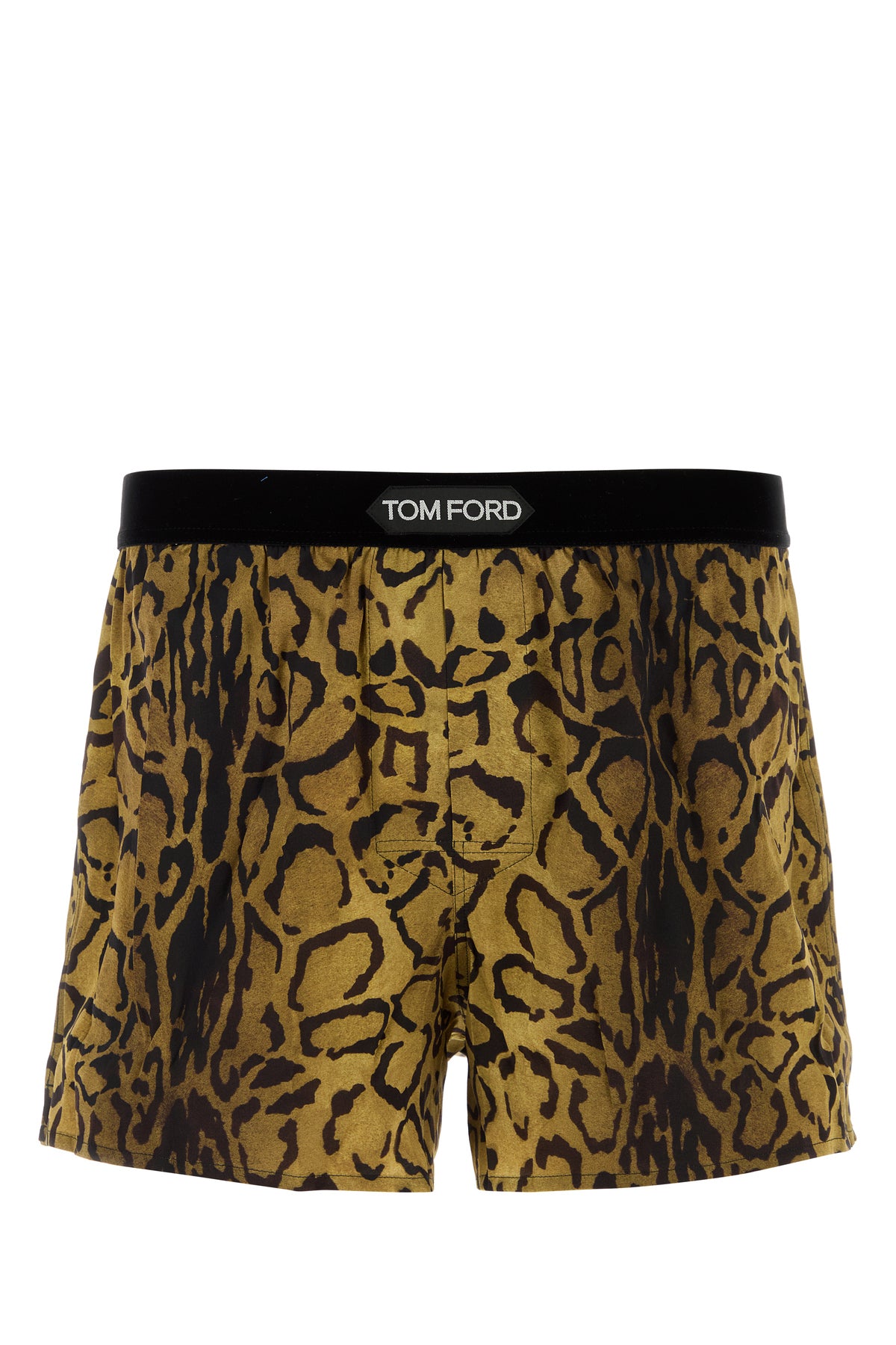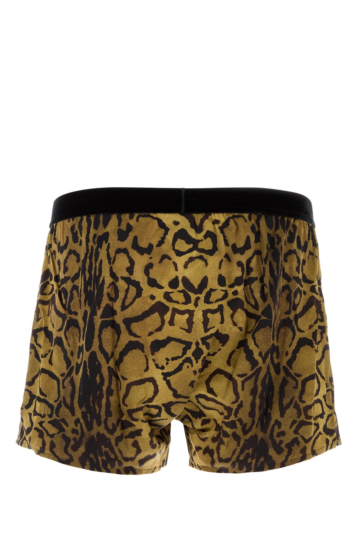 Boxer realized in stretch silk satin characterized by leopard motif print on the entire surface enriched by logoed patch at the front.
