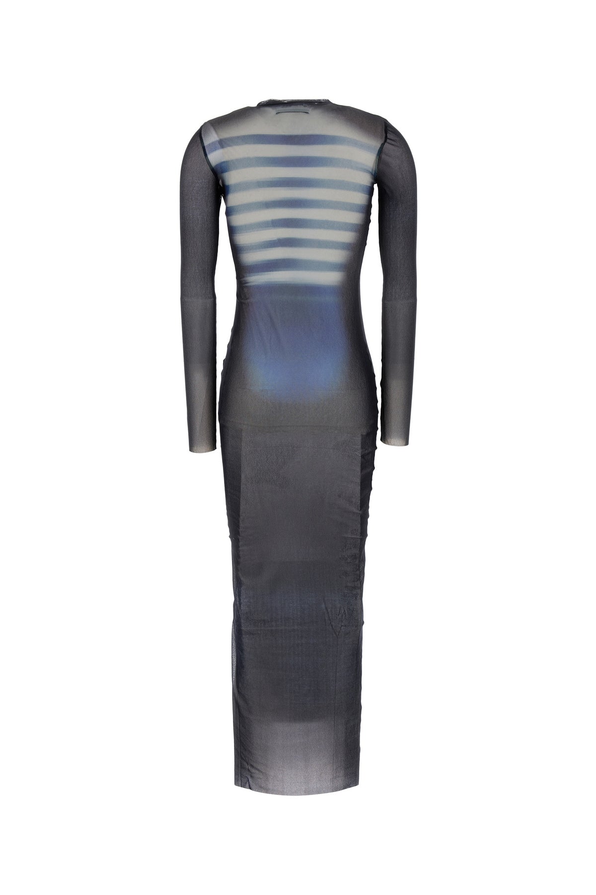 Long-cut dress realized in tulle characterized by peculiar print on the entire surface and printed logo at the front.
