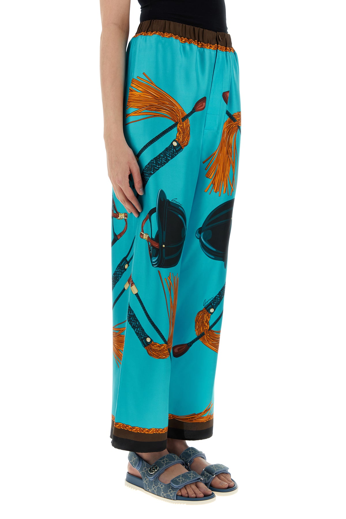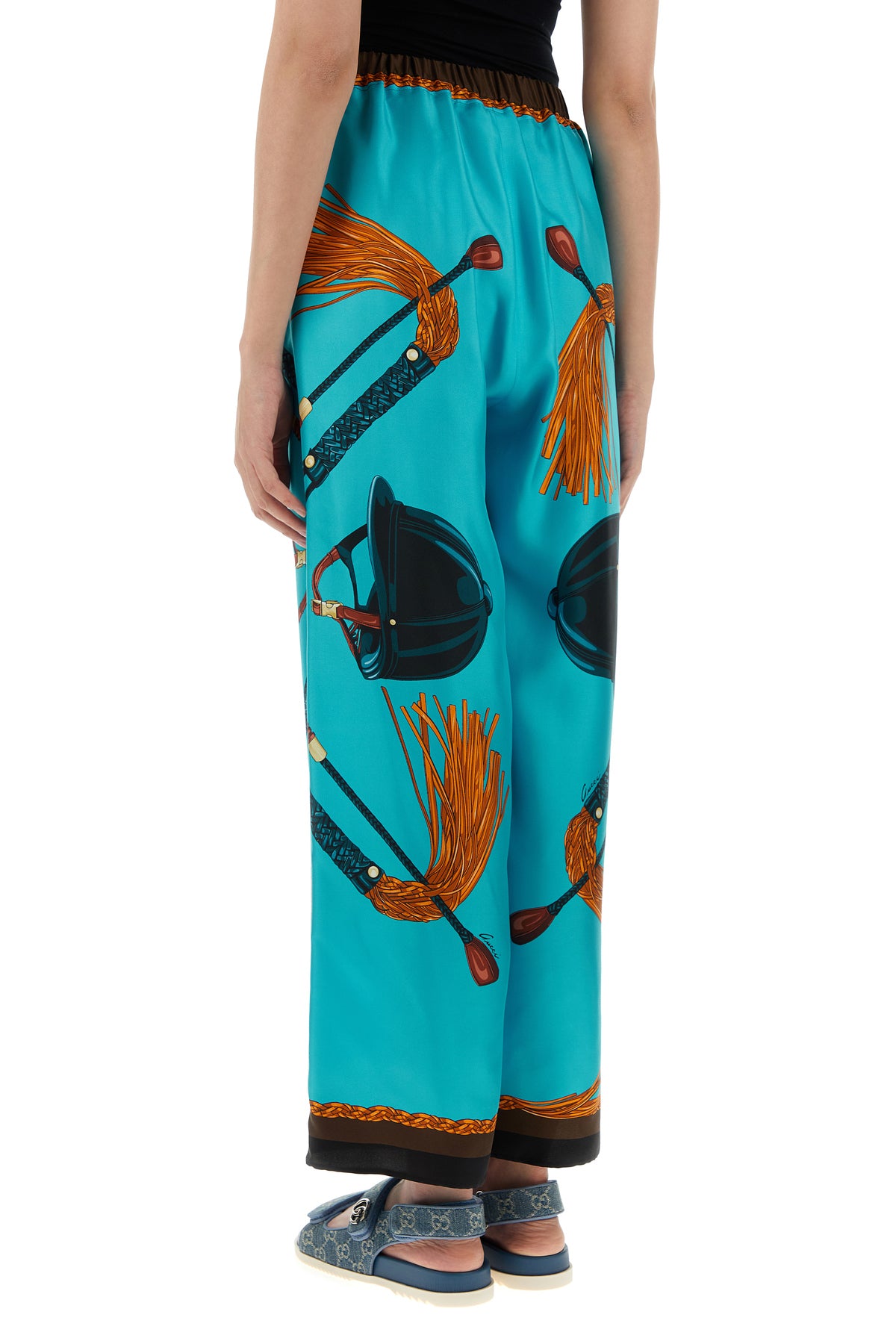 Pant realized in pure silk twill characterized by equestrian print on the entire surface.
