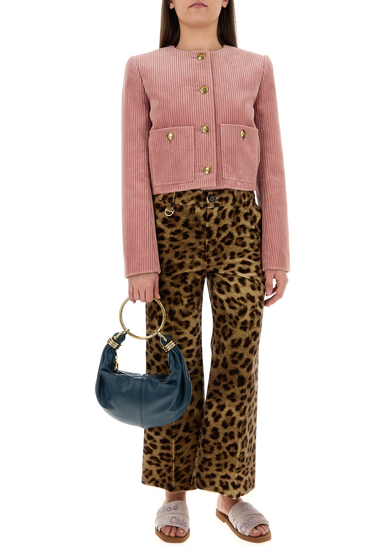 Pant realizza in pure cotton velvet characterized by animal print on the entire surface.
