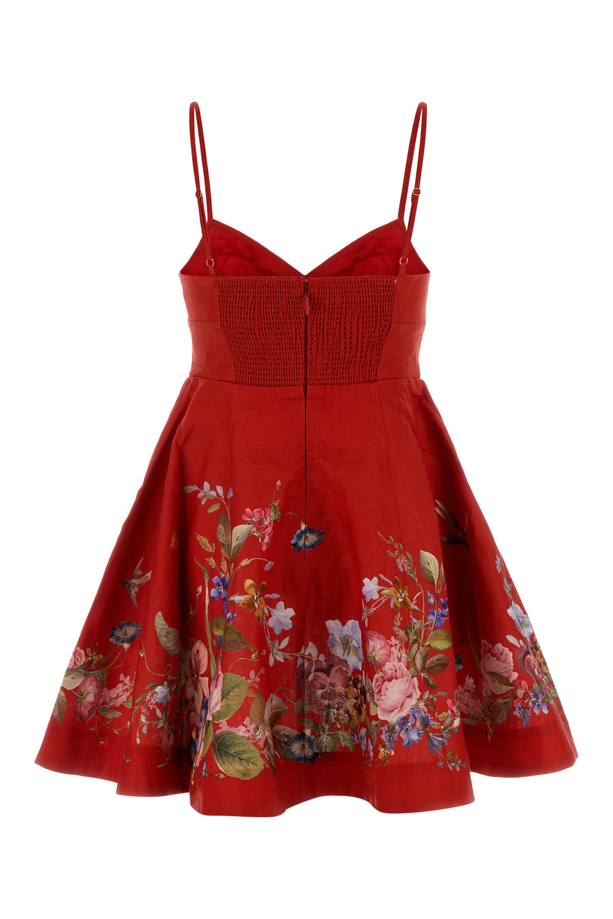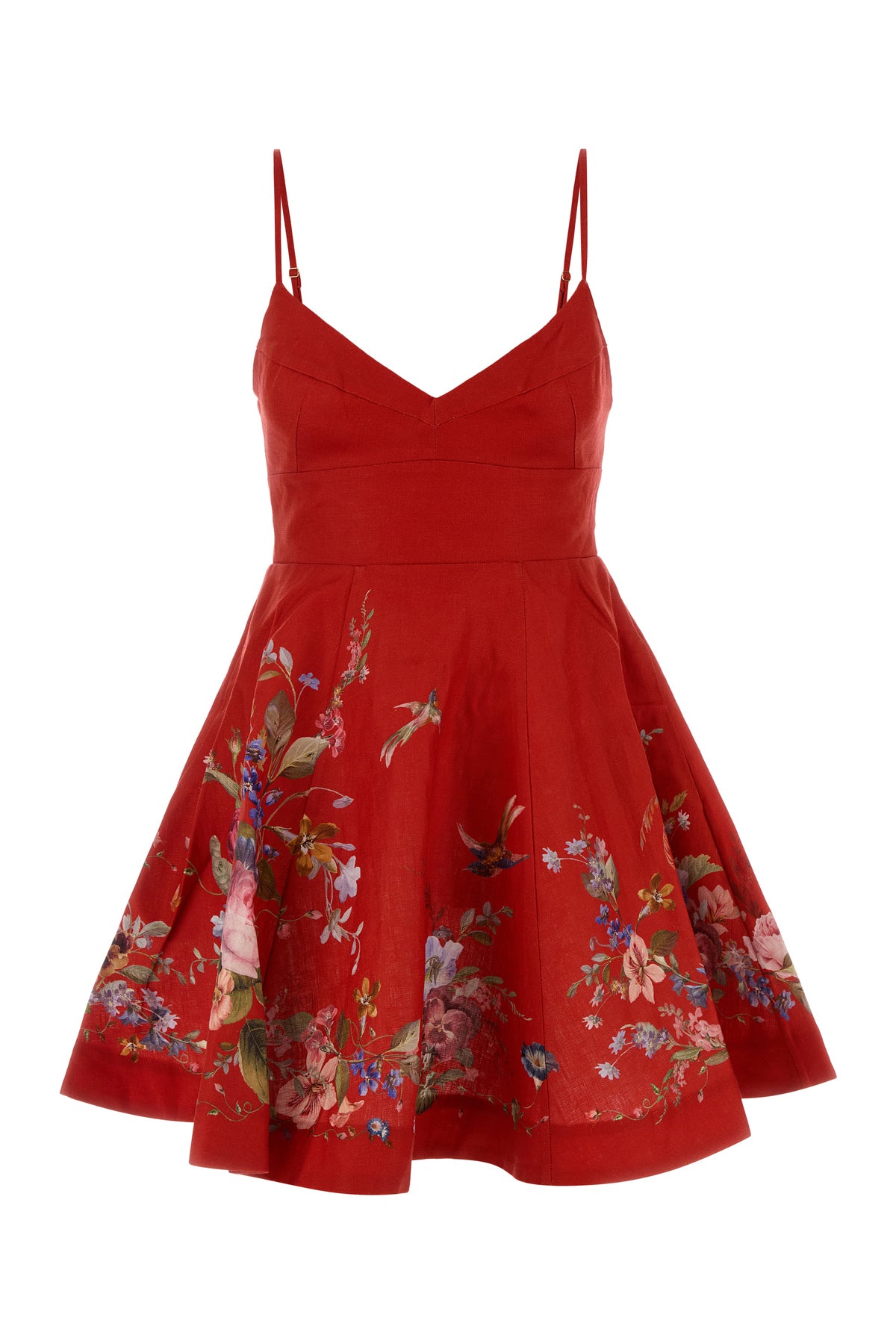 Mini dress realized in pure linen characterized by floral print at the front and at the back.
