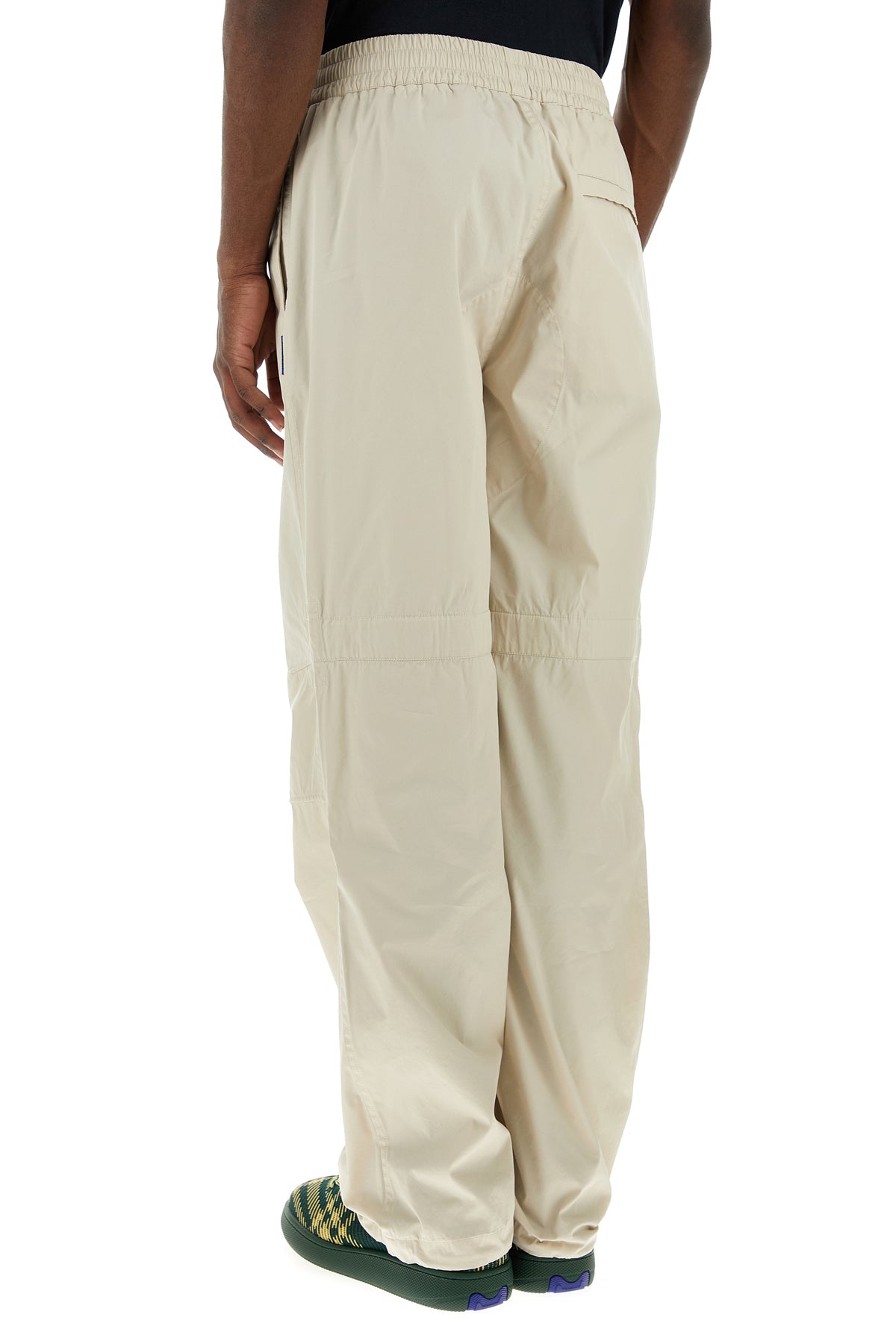 Pant realized in cotton blend enriched by contrasting logoed label on the side.