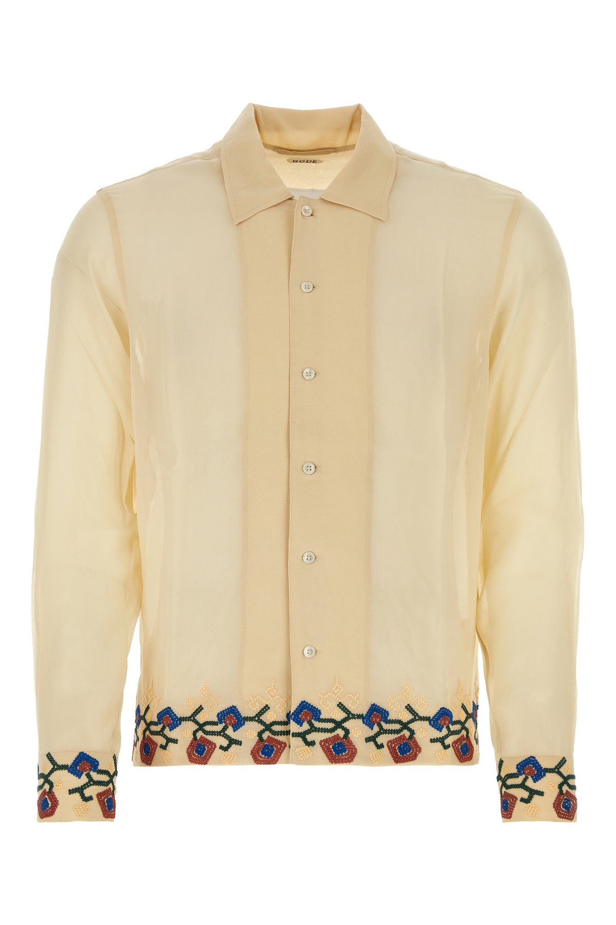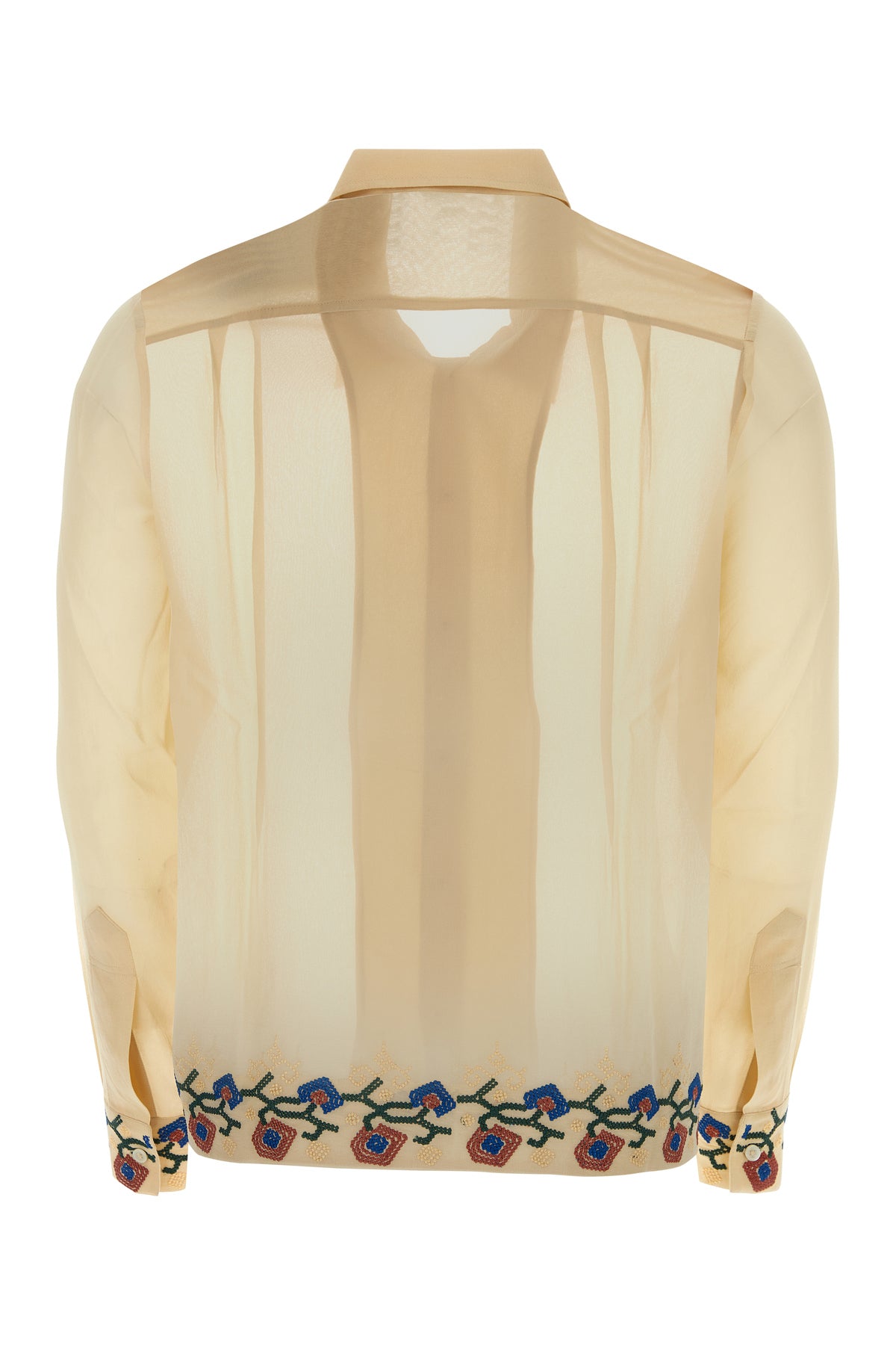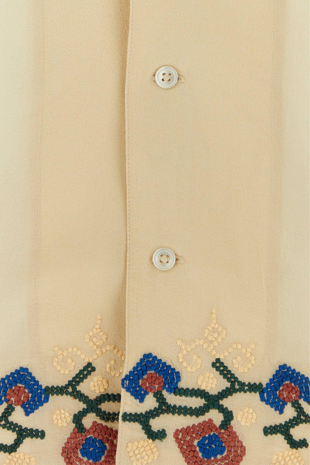 Shirt realized in pure silk characterized by contrasting peculiar embroideries on the cuffs and on the hemline.
