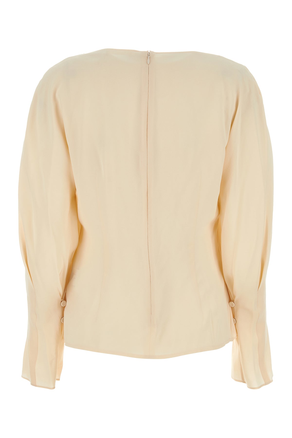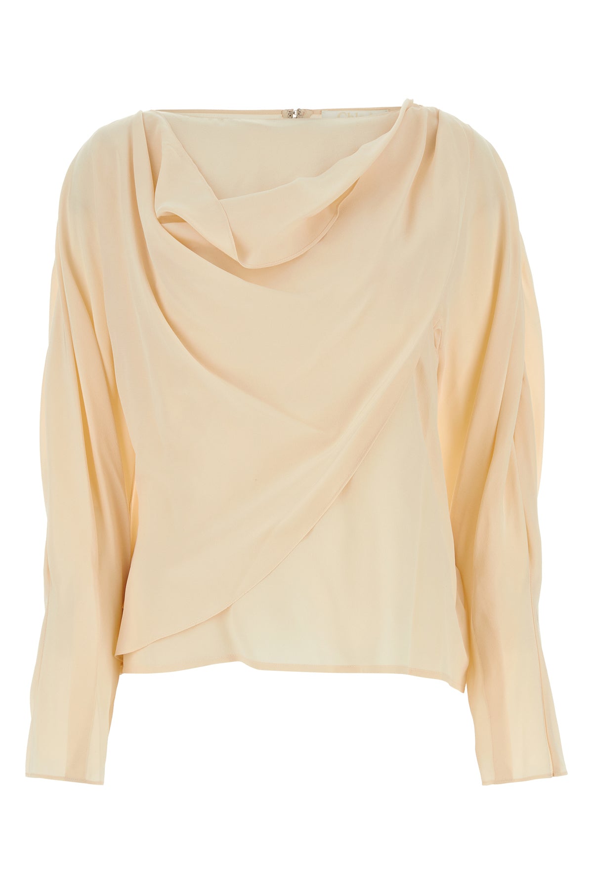 Semi-transparent blouse realized in pure silk crepe characterized by drape at the front.