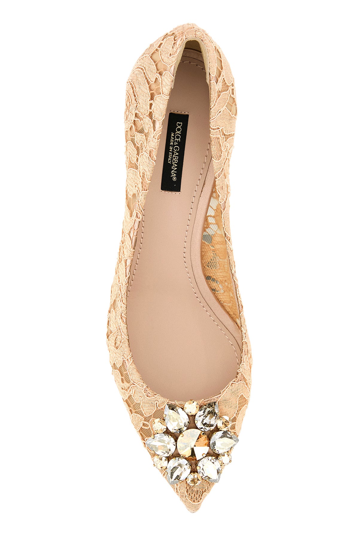 Pumps realized in macrame lace enriched by jewel detail at the front.