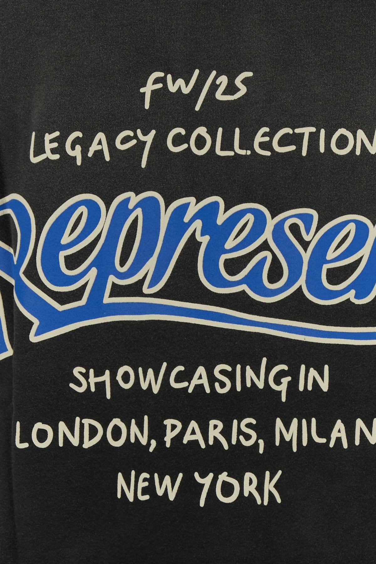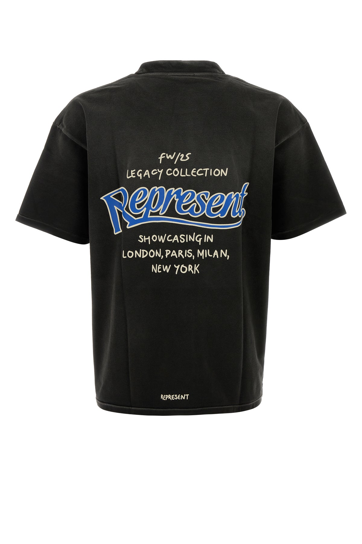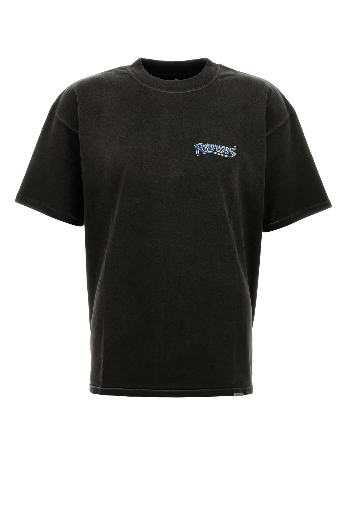 T-shirt realized in stonewashed effect pure cotton characterized by contrasting printed logo on the chest and Represent Showcasing print at the back.