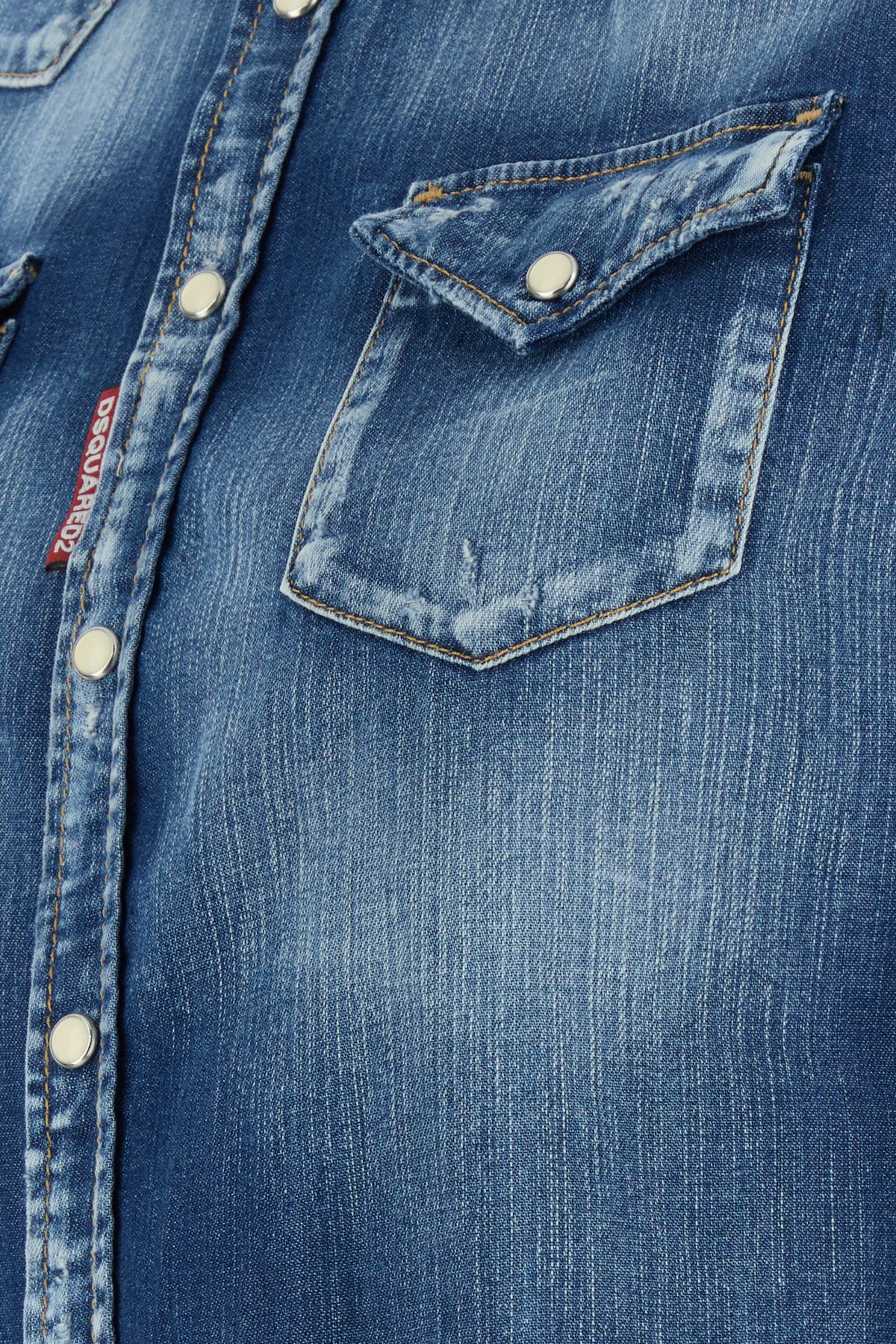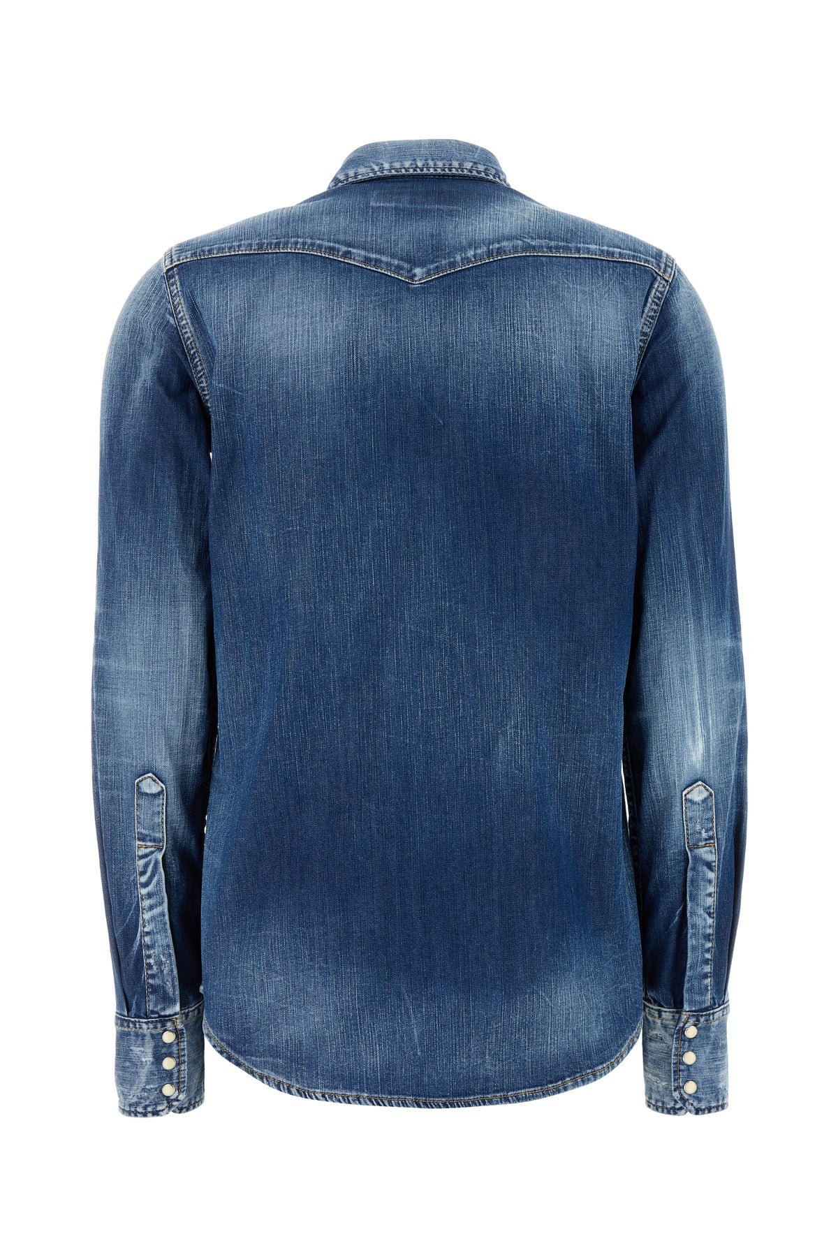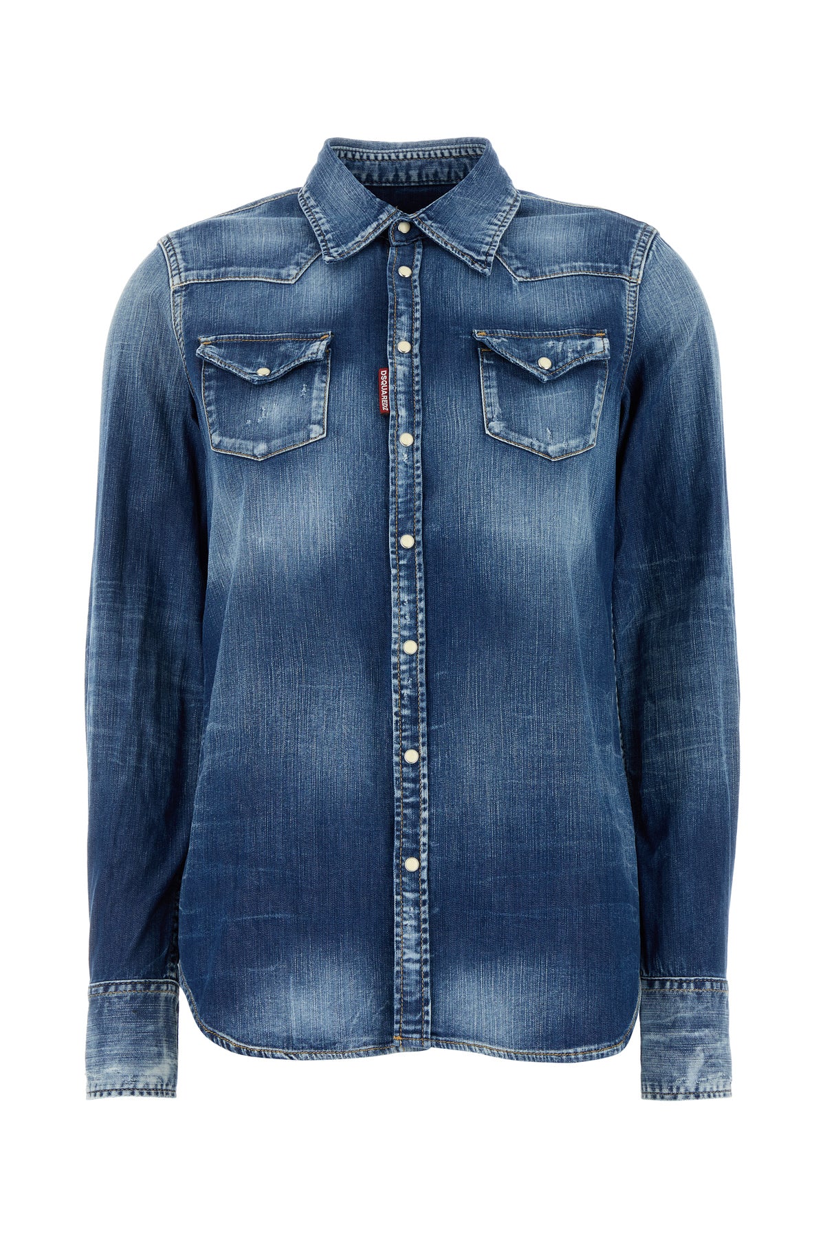 Shirt realized in stretch cotton denim characterized by contrasting stitchings.