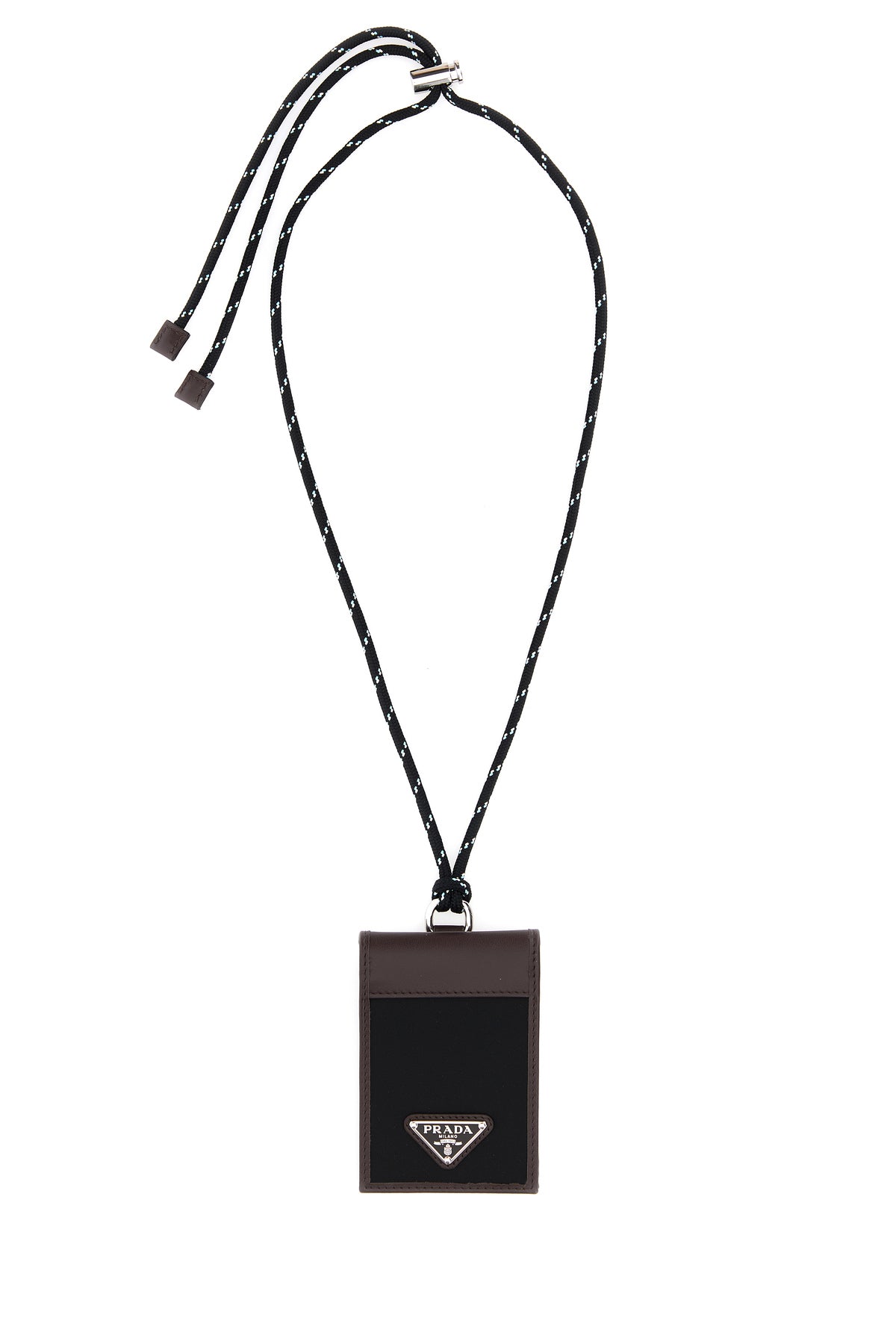 Card holder realized in canvas and leather enriched by iconic logoed metal triangle at the front.