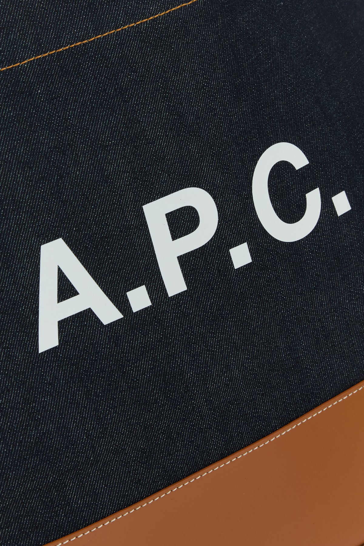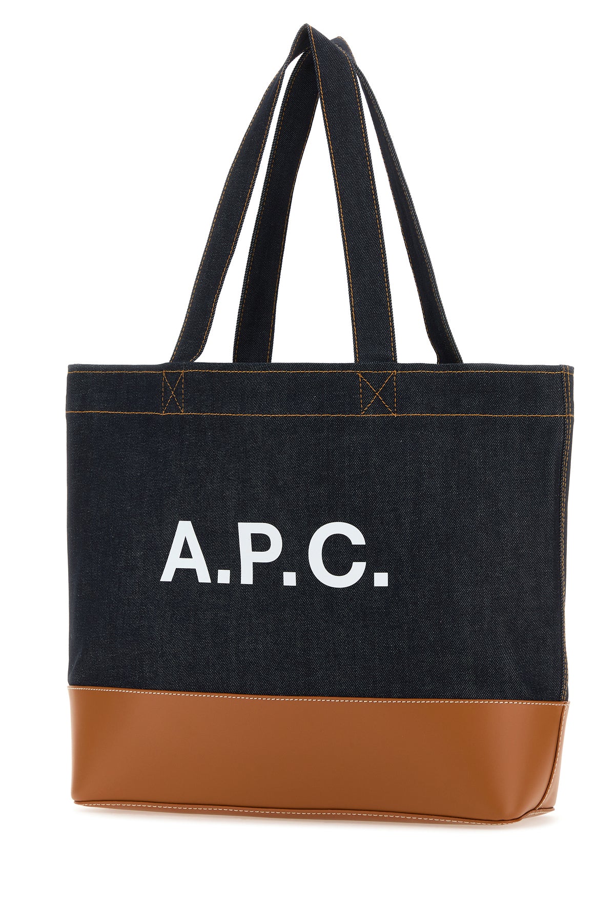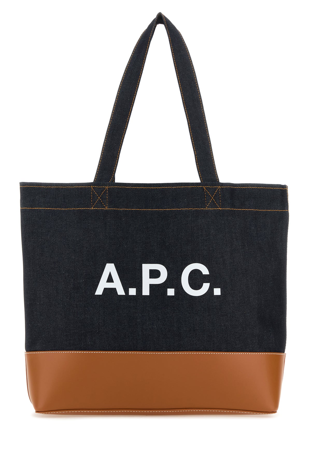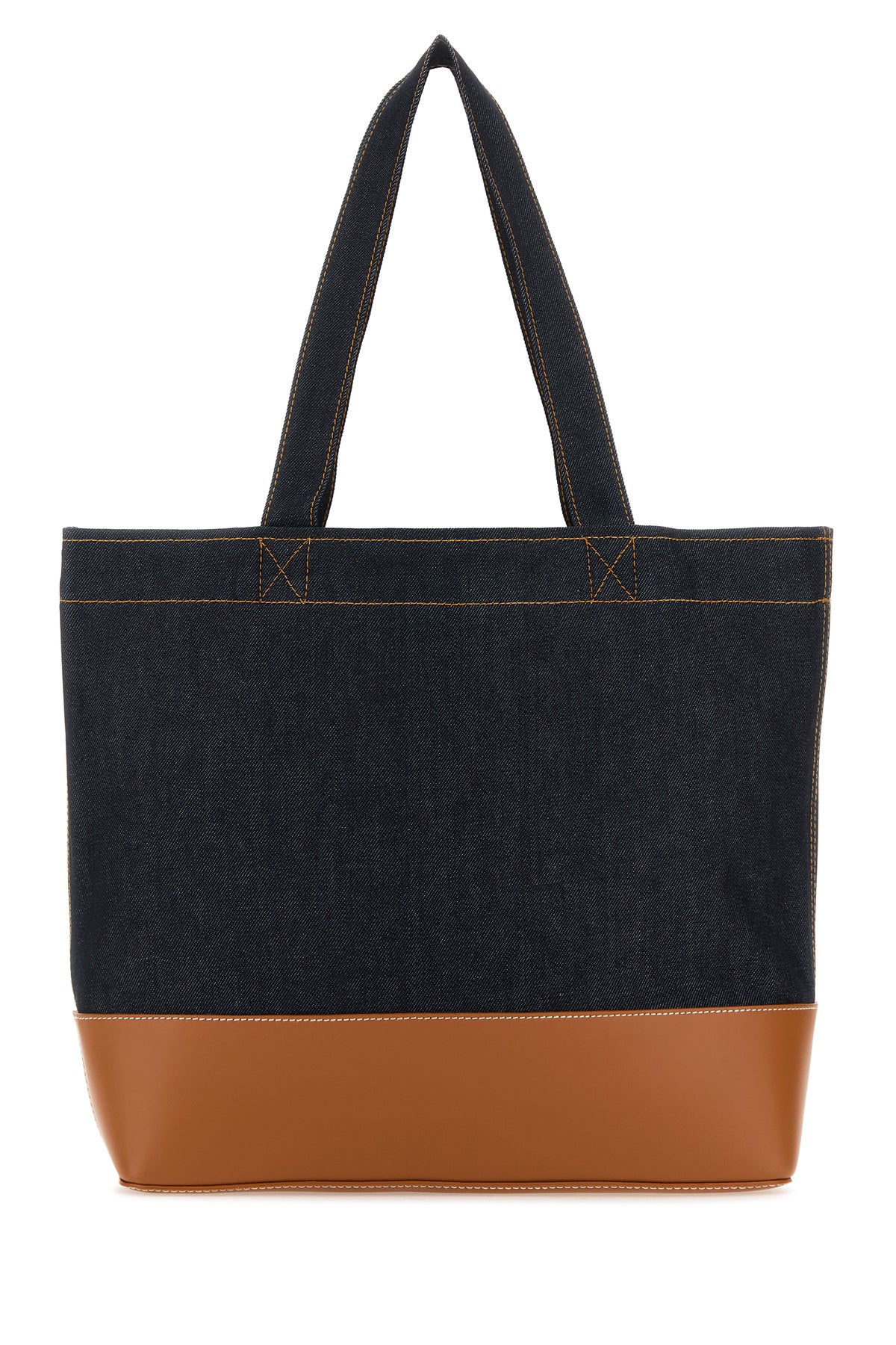 Shopping bag realized in denim and smooth leather characterized by printed logo at the front.