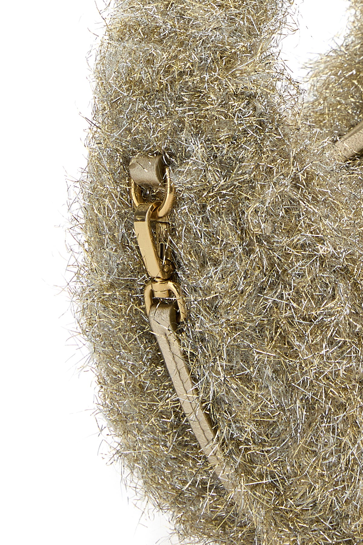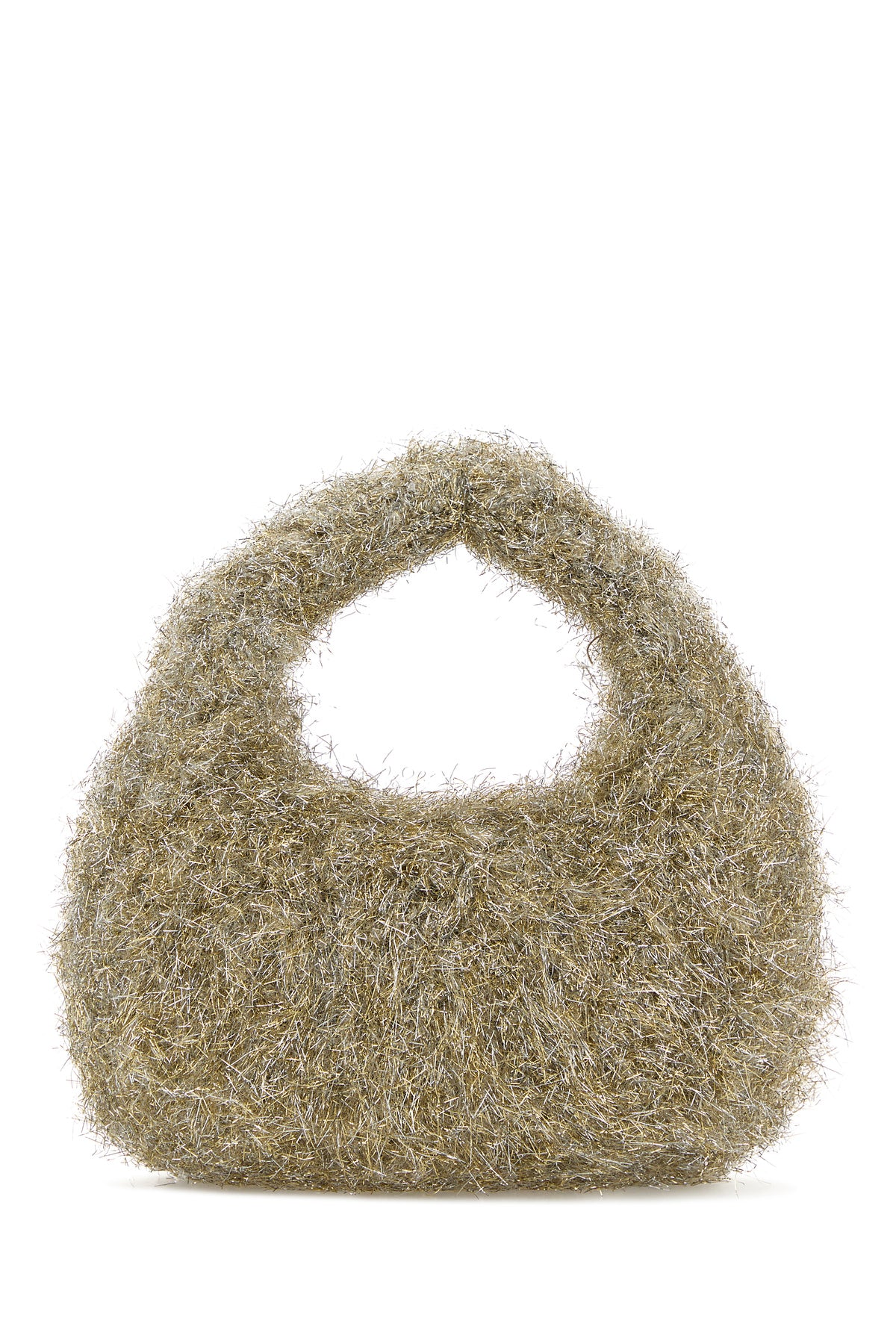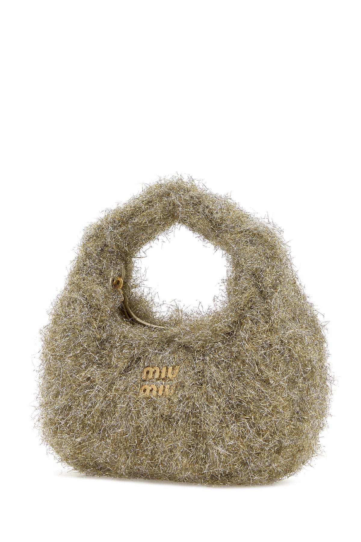 Handbag realized in fabric with lurex threads enriched by metal lettering logo at the front.