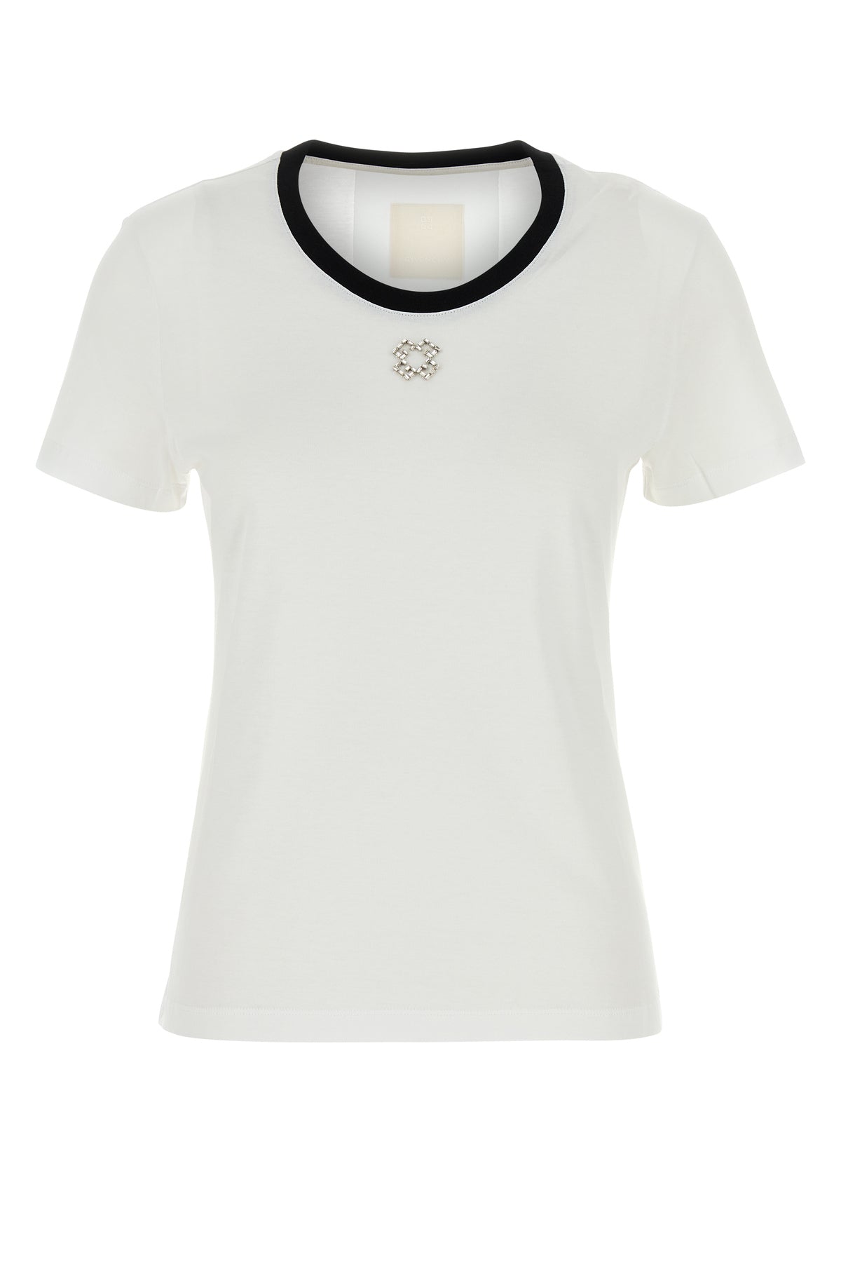 T-shirt realized in pure cotton with contrasting fabric trimmings enriched by 4G rhinestones detail at the front.