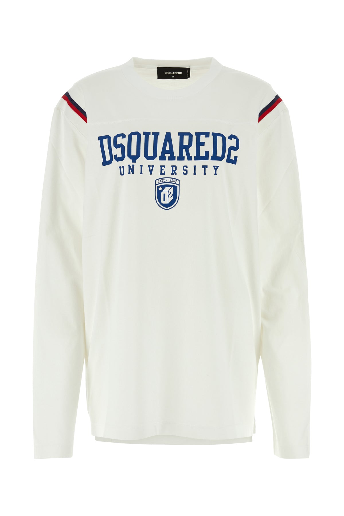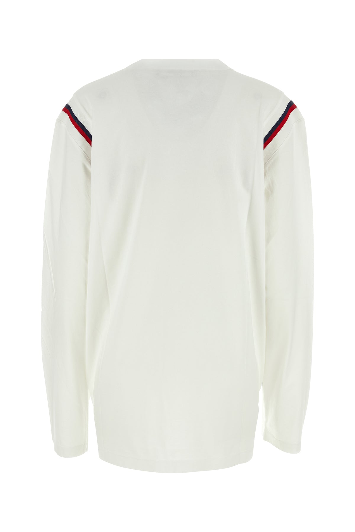 Long-sleeves t-shirt realized in pure cotton characterized by contrasting logoed print at the front.