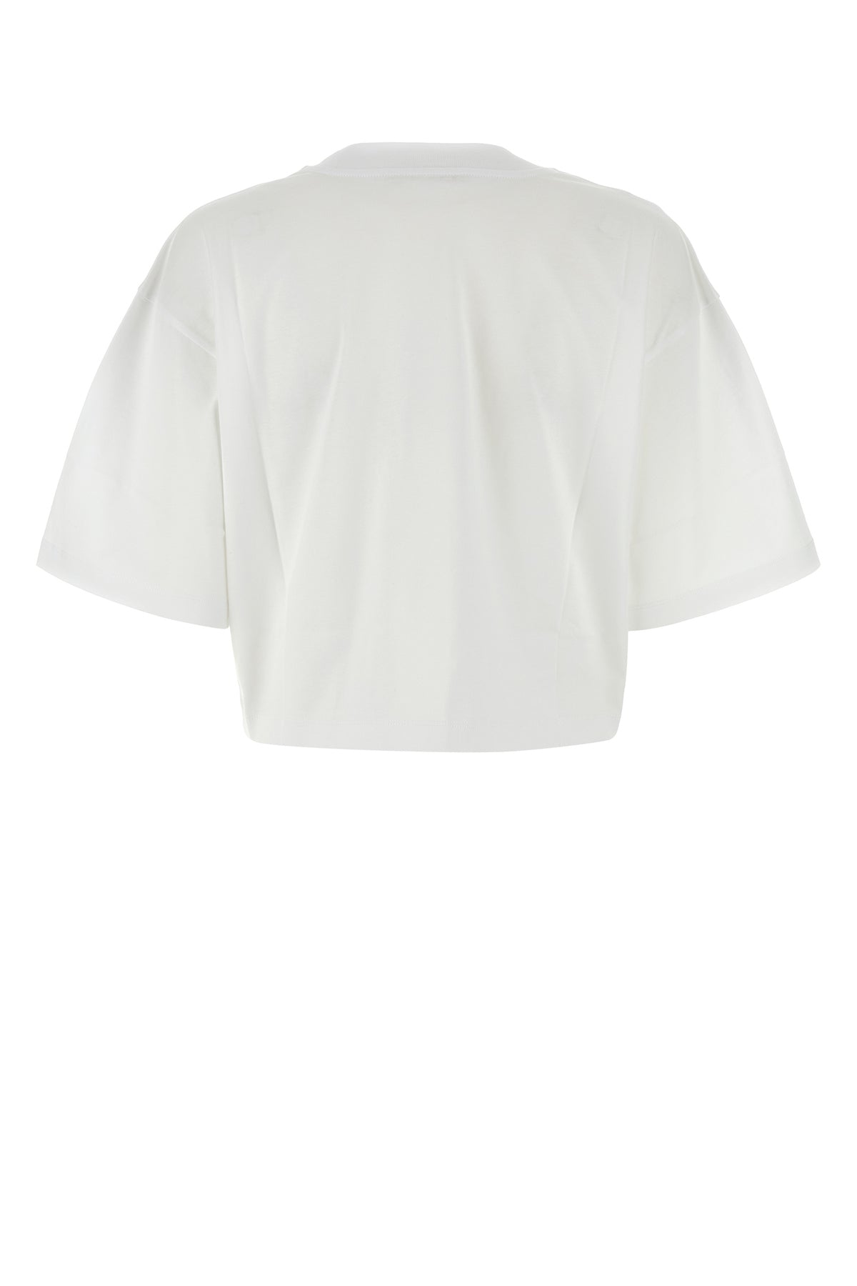 Cropped-cut t-shirt realized in pure cotton characterized by contrasting printed logo on the chest.