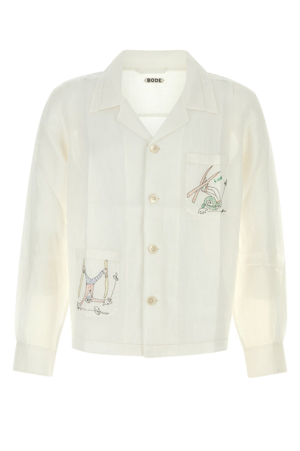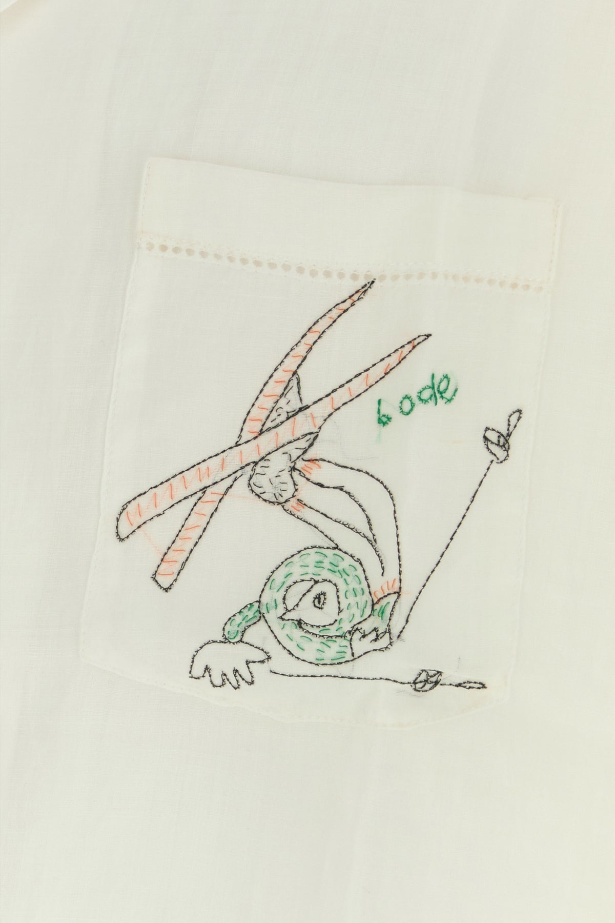 Shirt realized in pure linen characterized by contrasting peculiar embroidery on the chest and on the side.