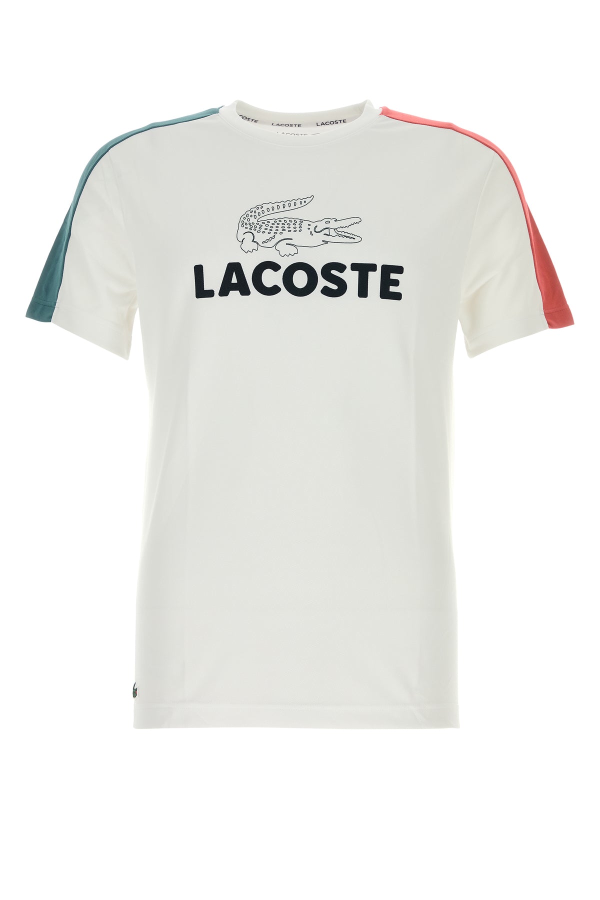T-shirt realized in polyester characterized by contrasting logoed print on the chest enriched by rubberized Crocodile patch on the hemline.