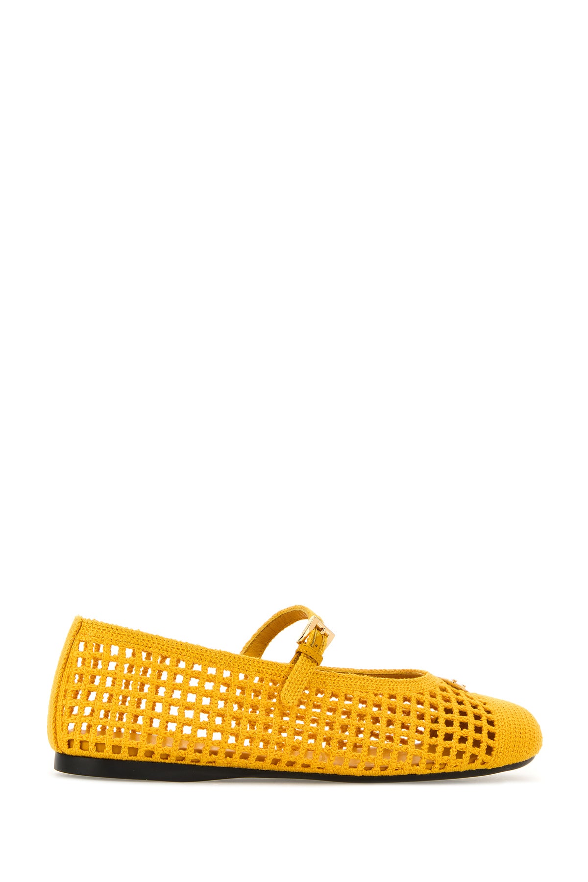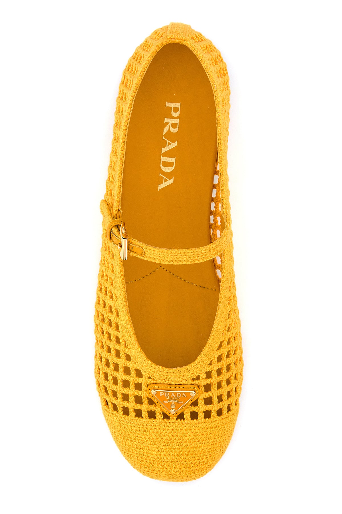 Ballerinas realized in crochet enriched by iconic logoed metal triangle on the instep.
