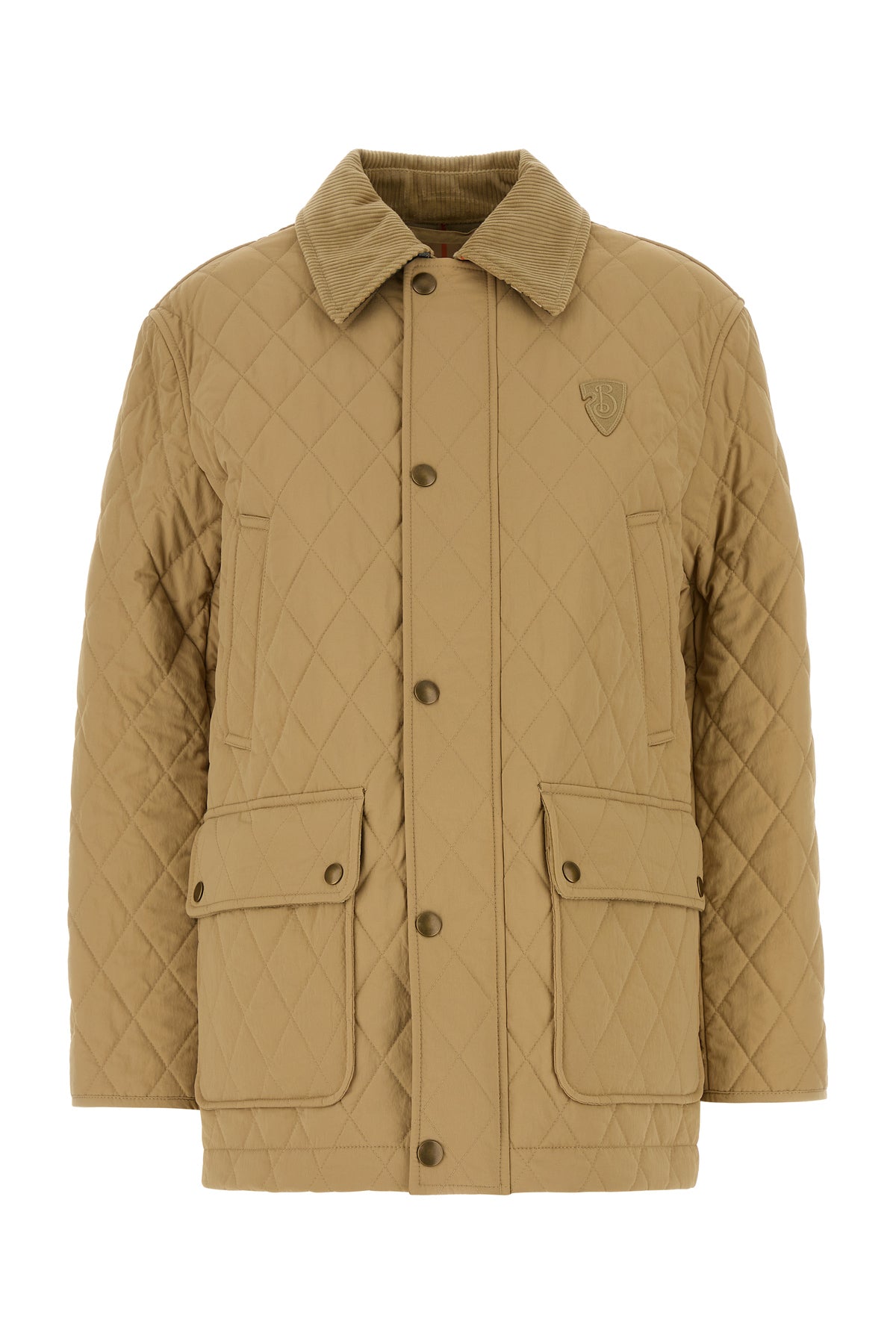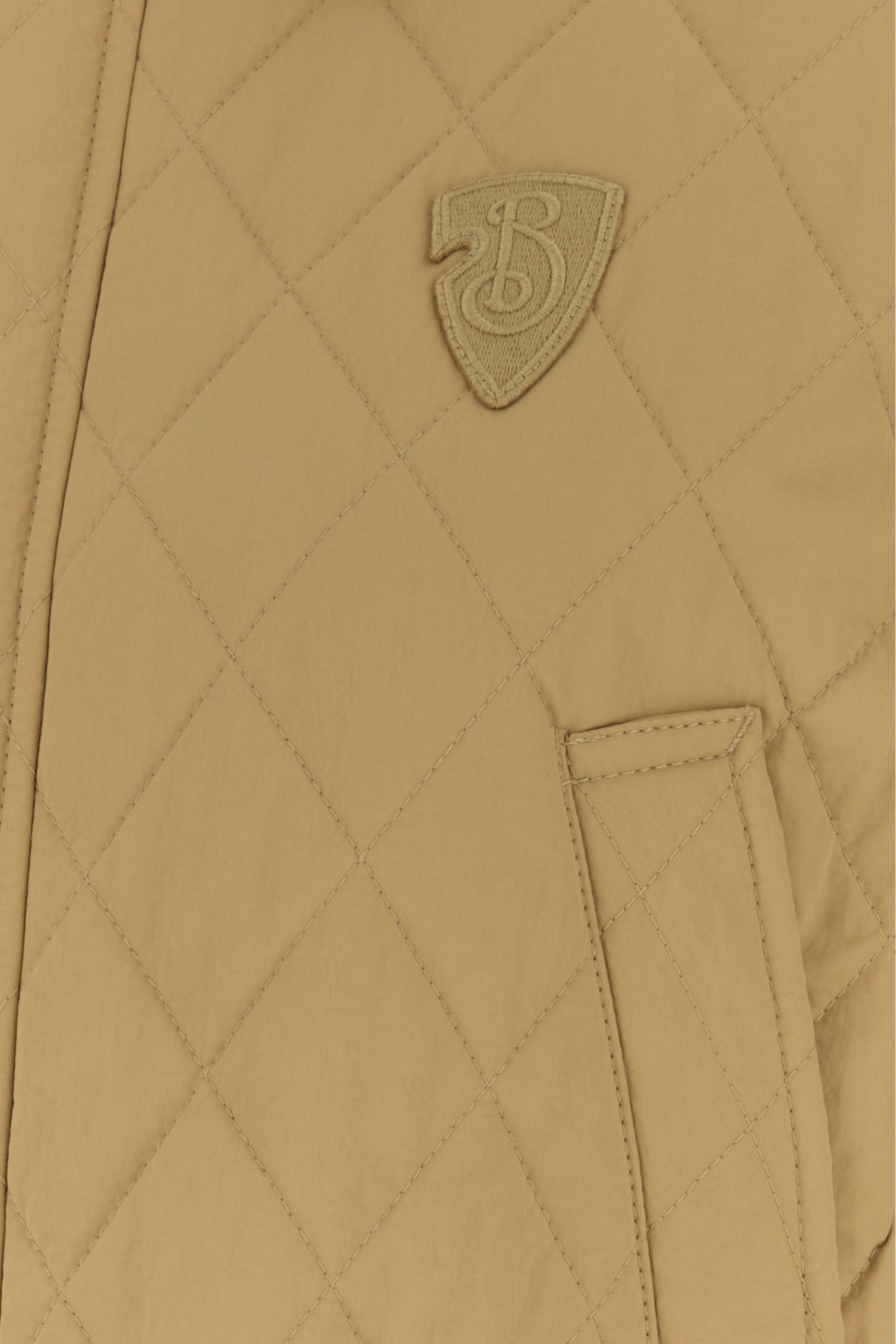 Jacket realized in quilted nylon enriched by tonal B Shield patch on the chest.