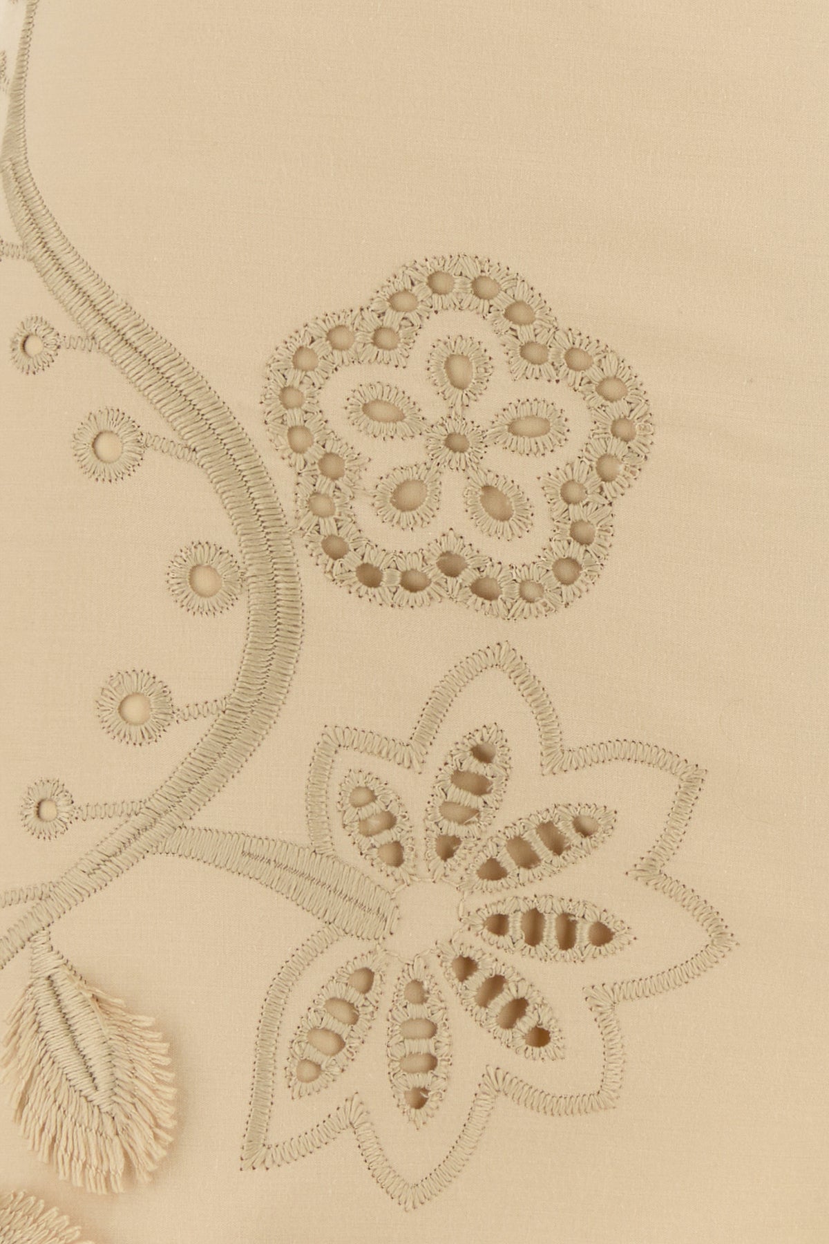 Pant realized in polyester blend characterized by peculiar floral embroideries on the entire surface.