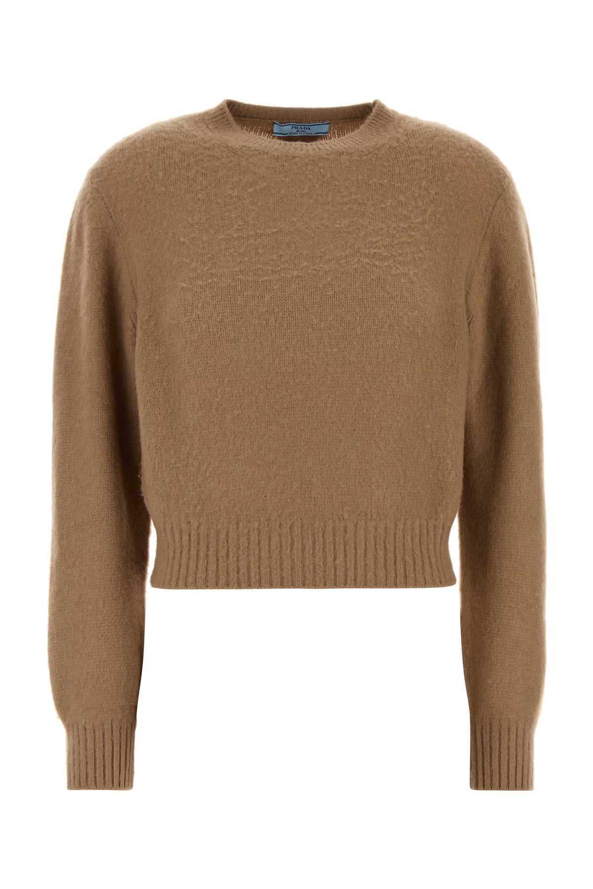 Sweater realized in pure cashmere enriched by tonal fabric iconic triangle at the back.