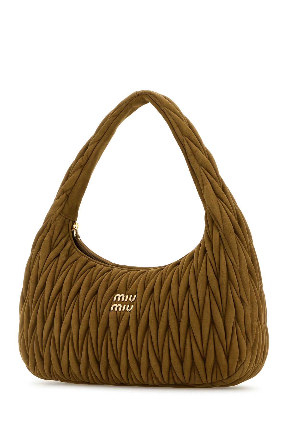 Shoulder bag realized in matelasse suede enriched by metal lettering logo at the front.
