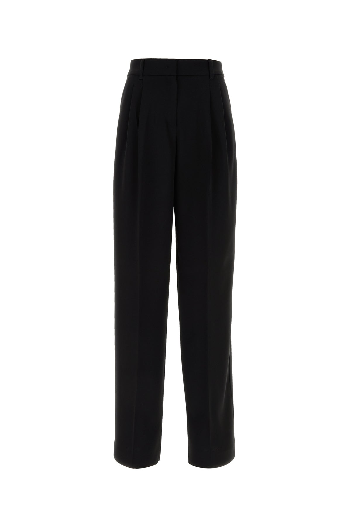 Wide-leg pant realized in cady characterized by inverted pleats.