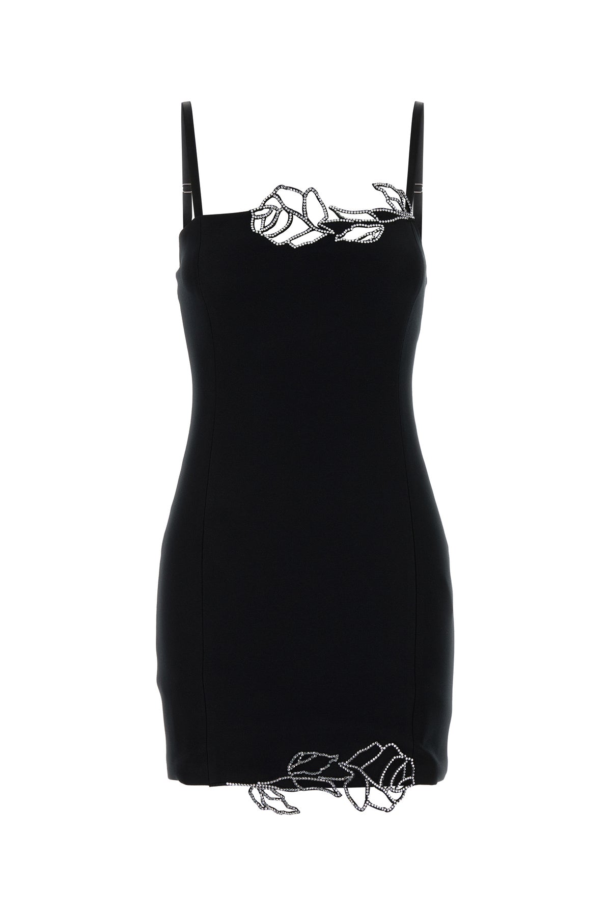 Mini dress realized in cady enriched by cut-out roses details with rhinestones at the top and on the hemline.