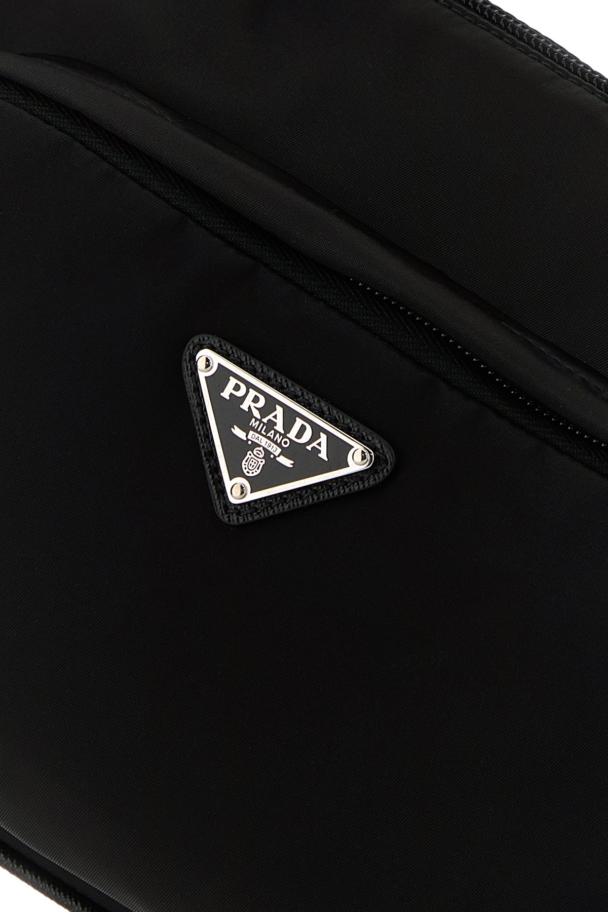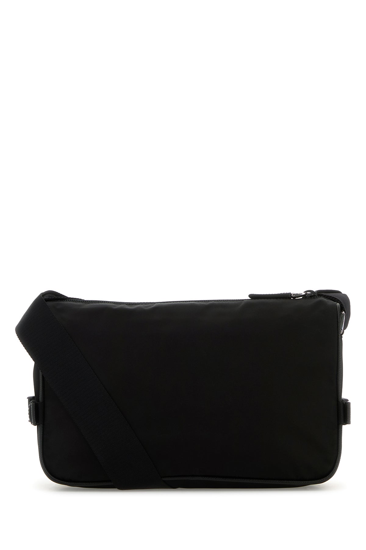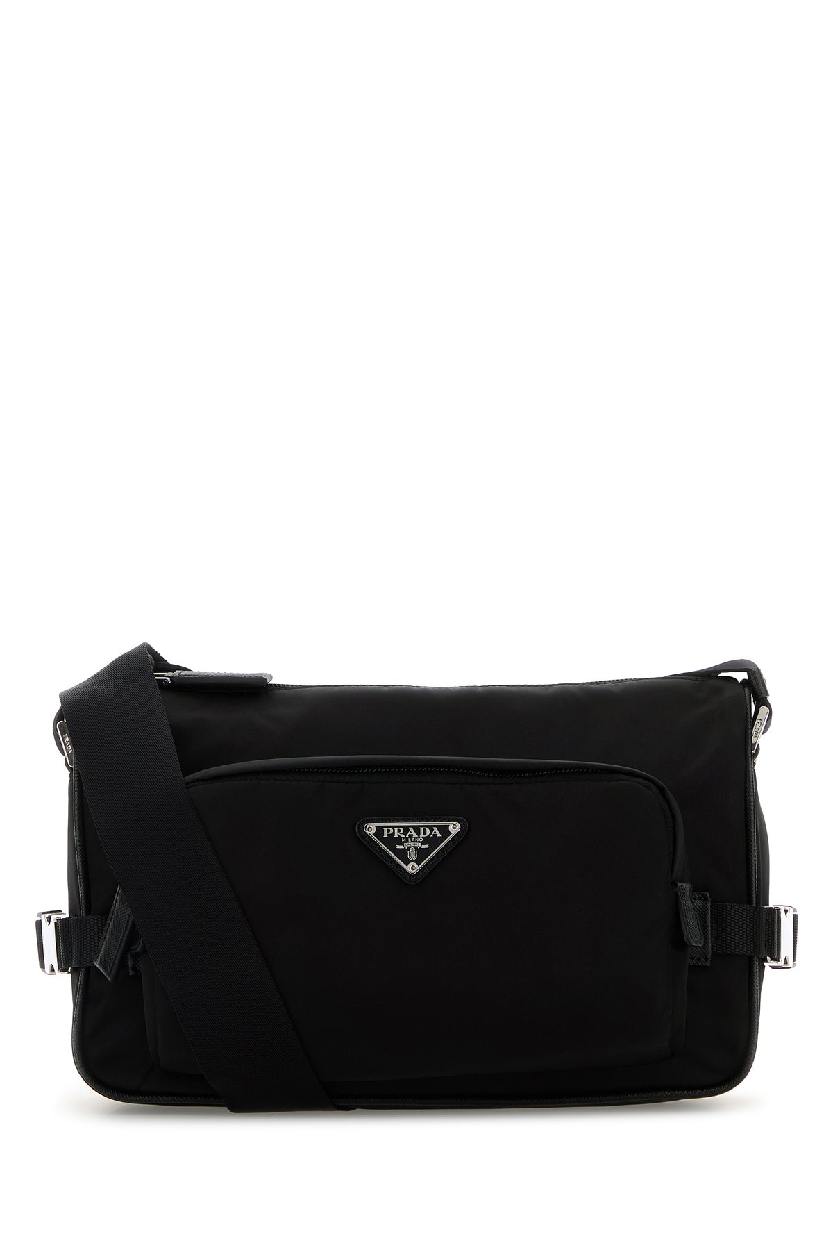 Crossbody bag realized in canvas enriched by iconic logoed metal triangle at the front.