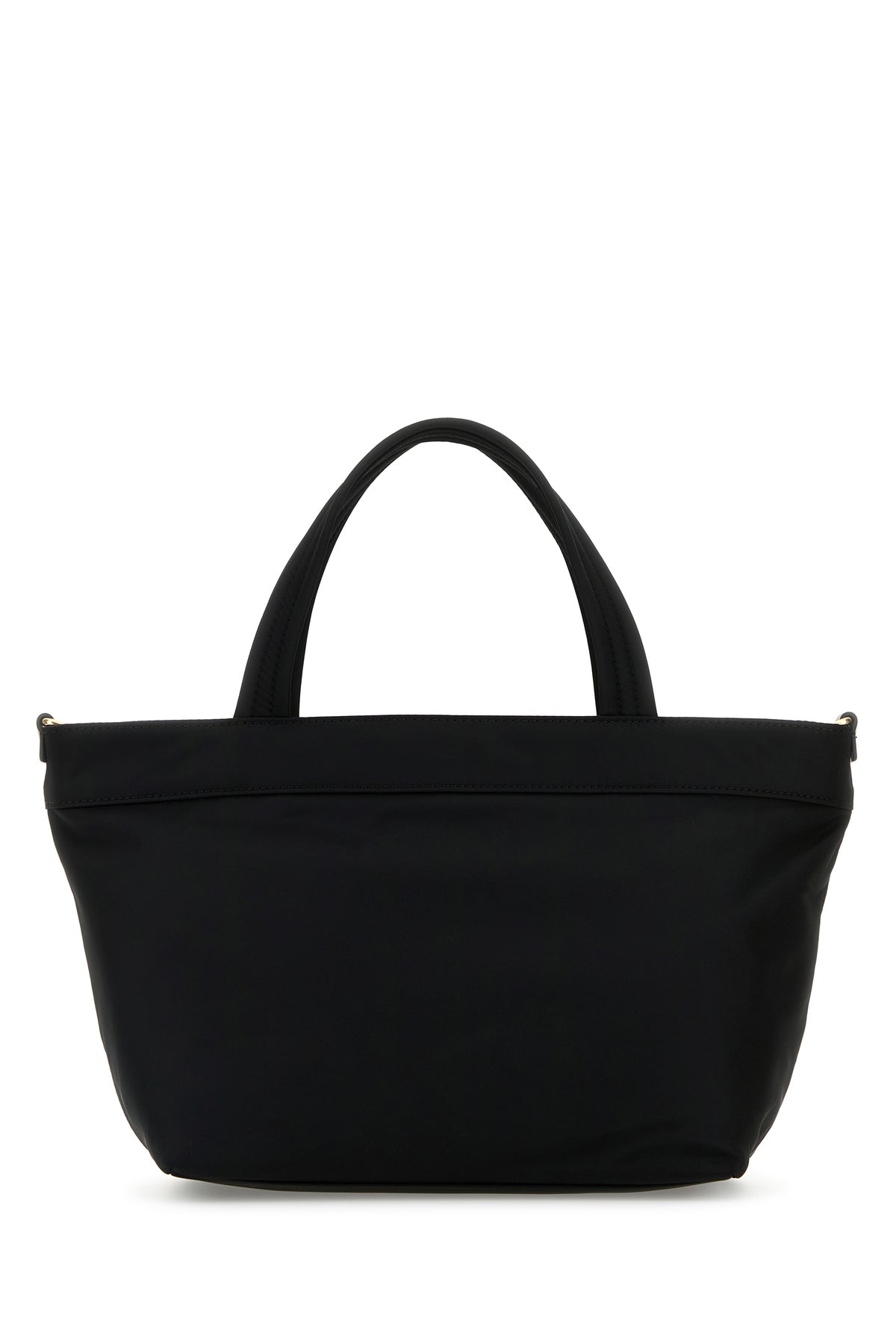 Handbag realized in canvas enriched by logoed metal detail at tHe front.