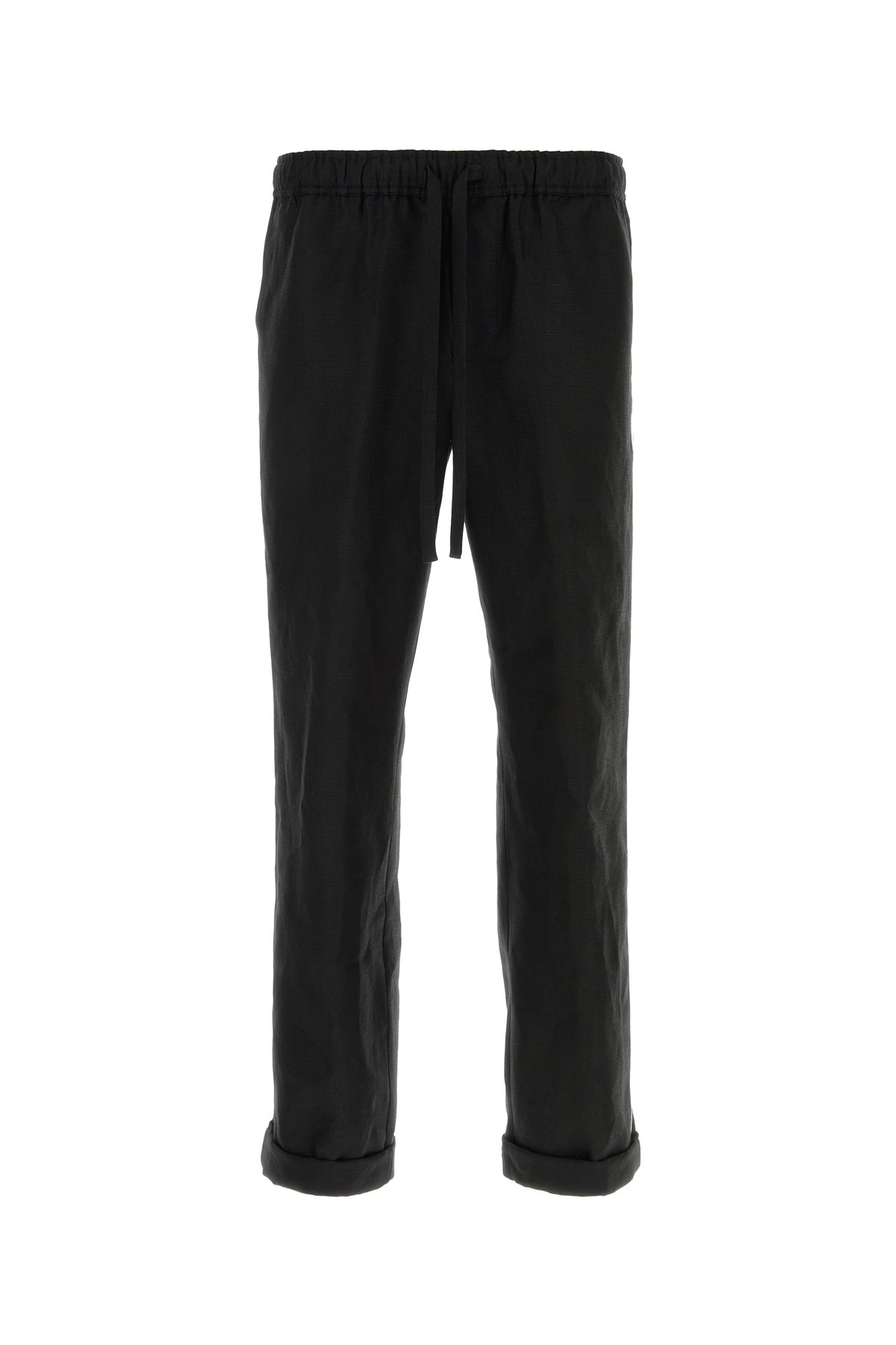 Pyjamas pant realized in pure linen canvas enriched by contrasting trimmings on the sides.