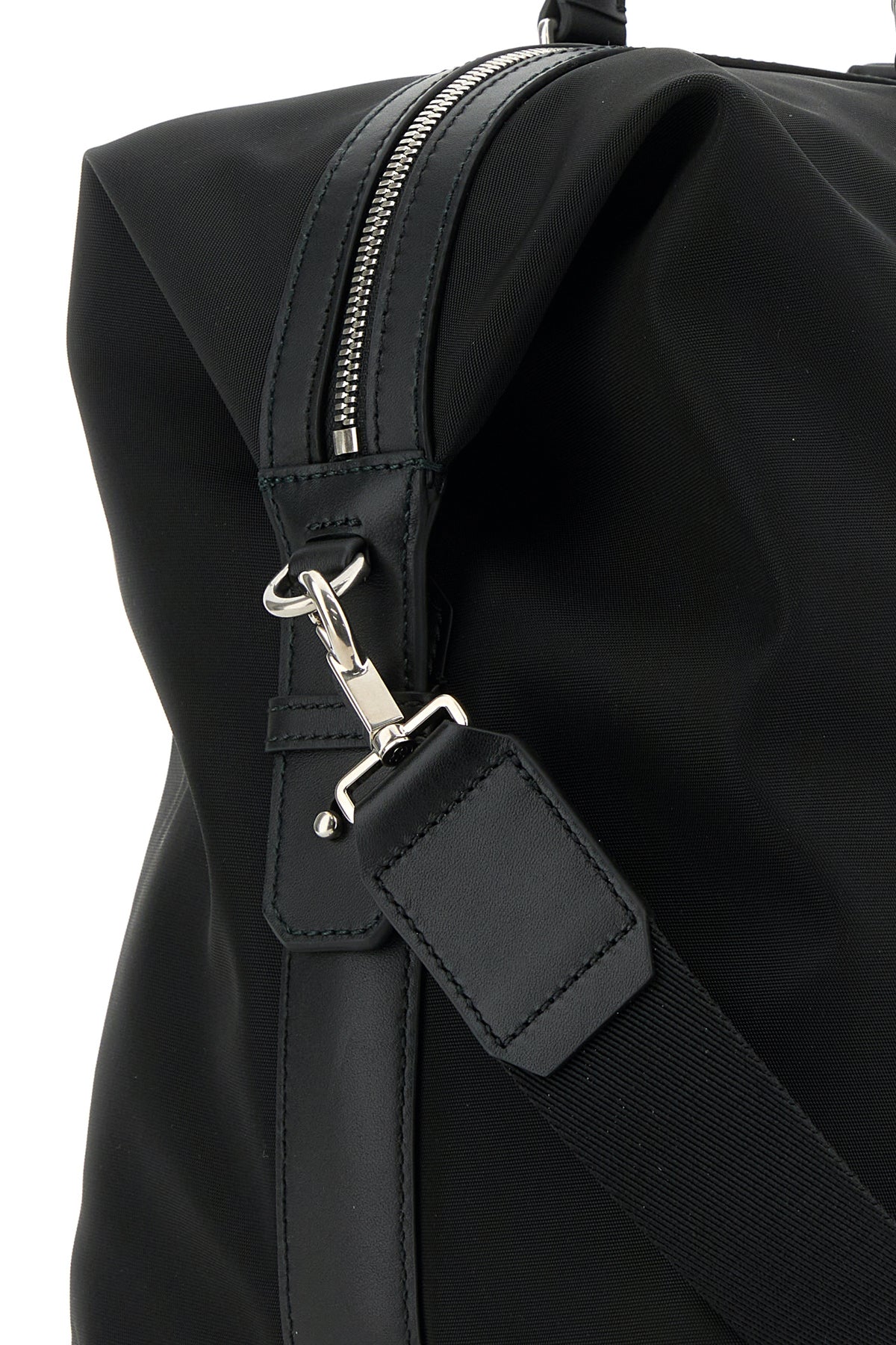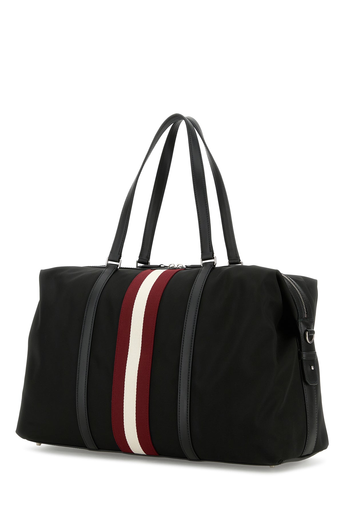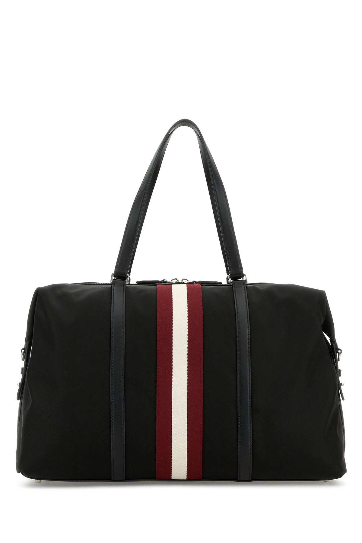 Travel bag realized in canvas enriched by tonal leather logoed patch and Bally Stripe at the front.