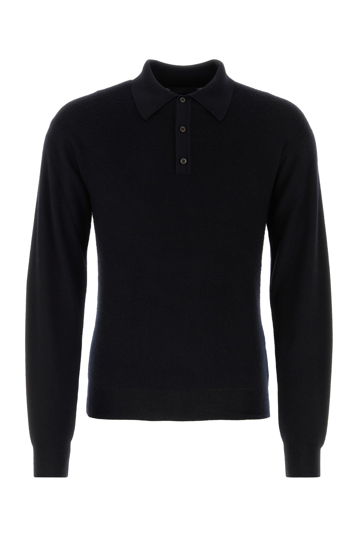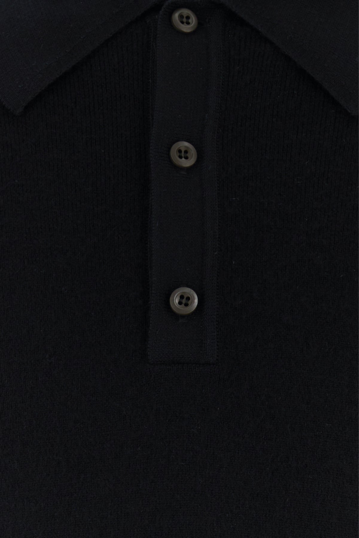 Polo shirt realized in cashmere and silk enriched by iconic tonal fabric triangle at the back.