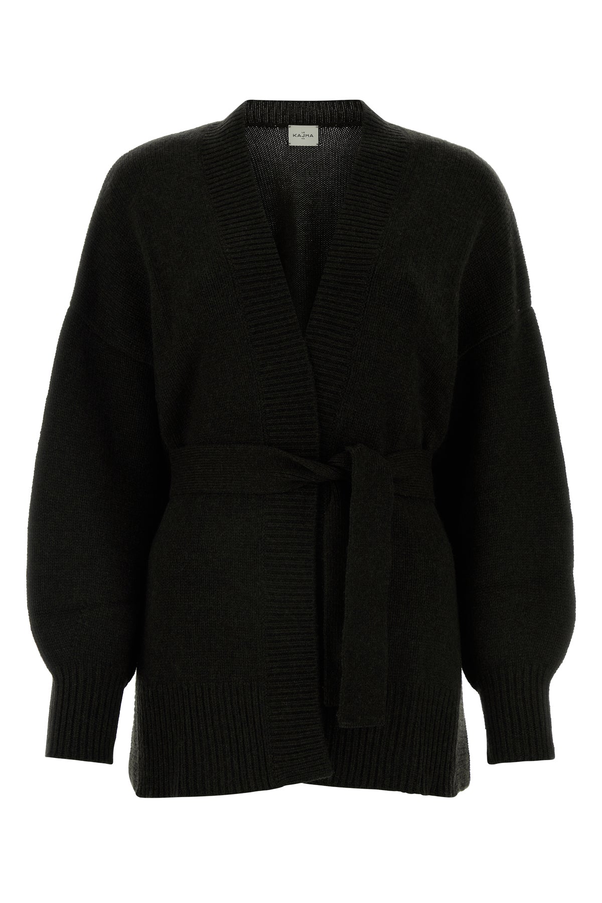 Cardigan realized in pure organic cashmere enriched by detachable tonal fabric belt.