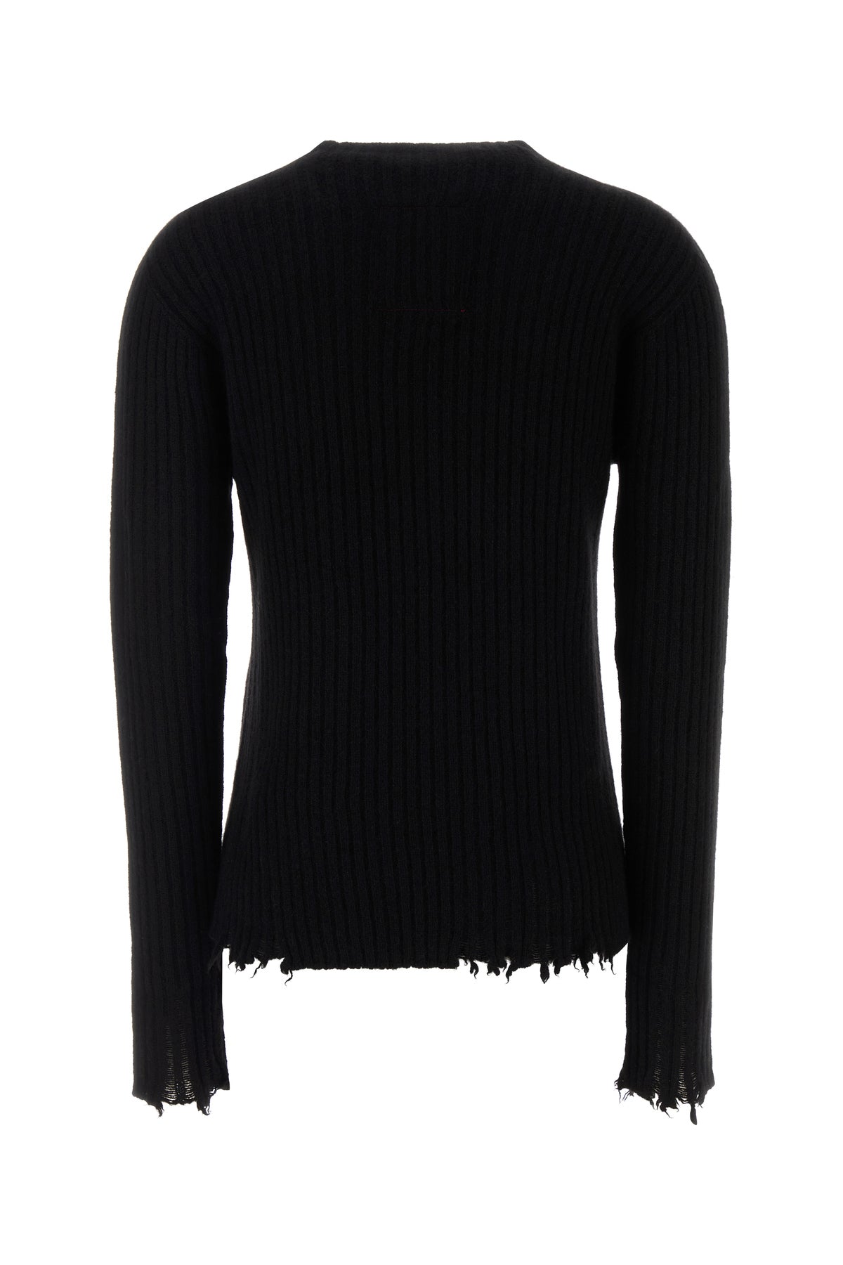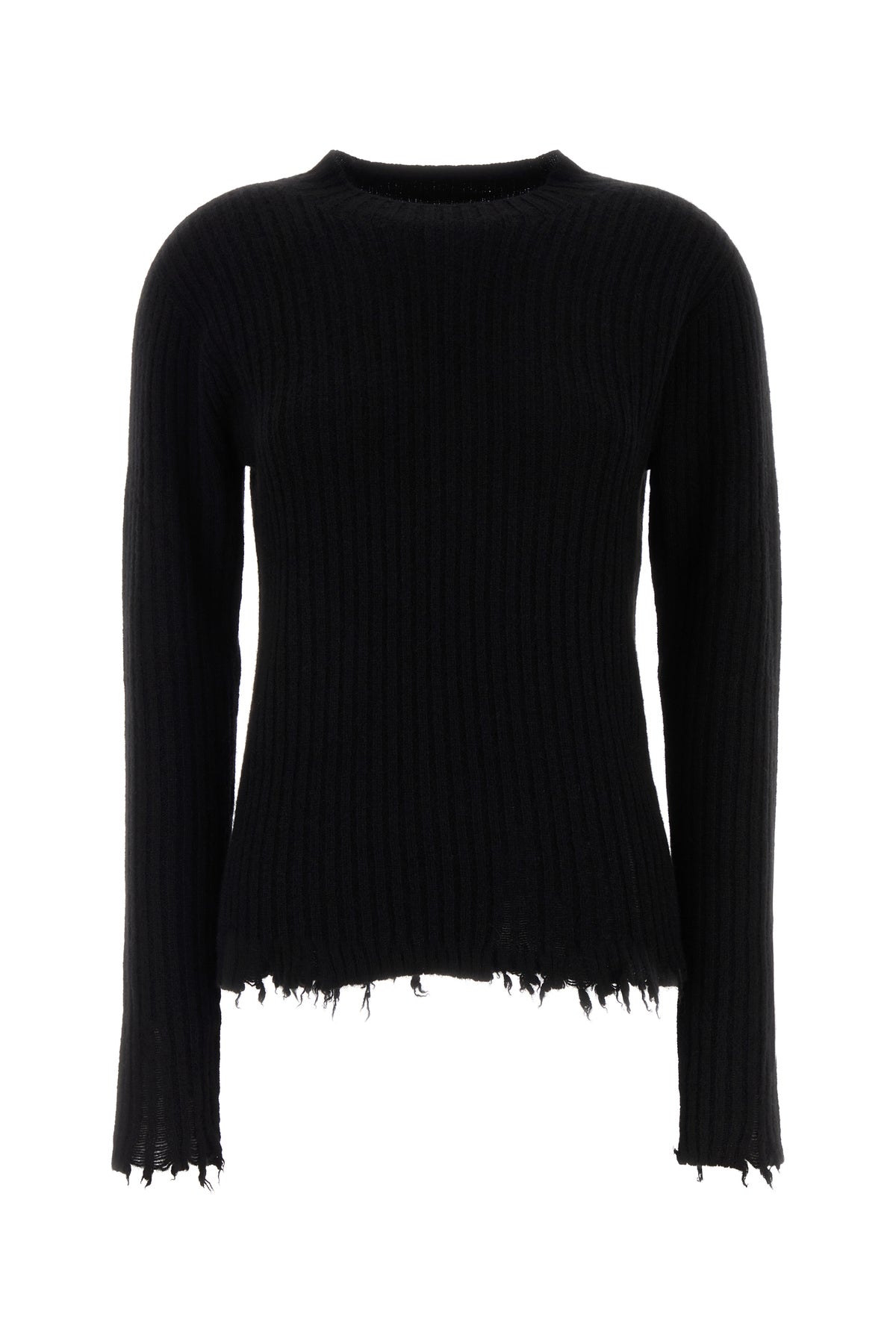 Sweater realized in pure ribbed cashmere characterized by distressed effect cuffs and hemline.