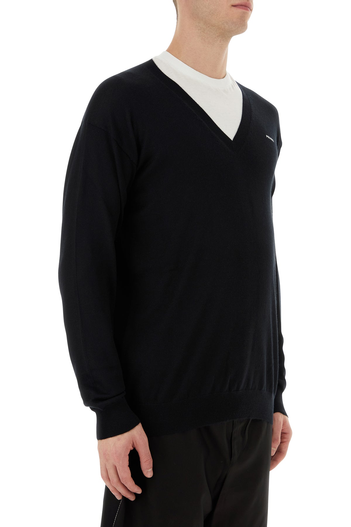 Sweater realized in pure cashmere characterized by contrasting logoed embroidery on the chest.