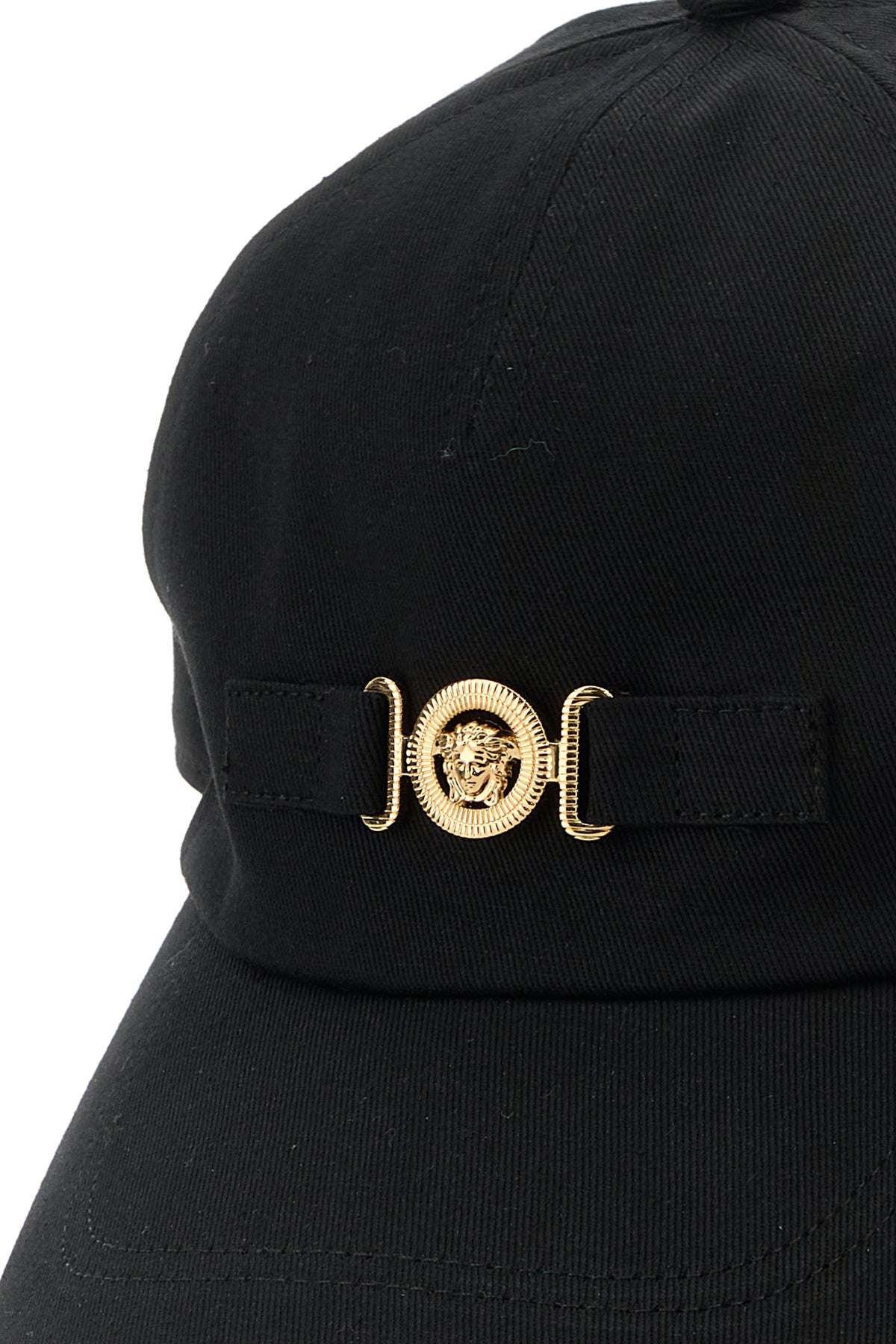 Baseball cap realized in pure cotton enriched by metal Medusa Biggie detail at the front.